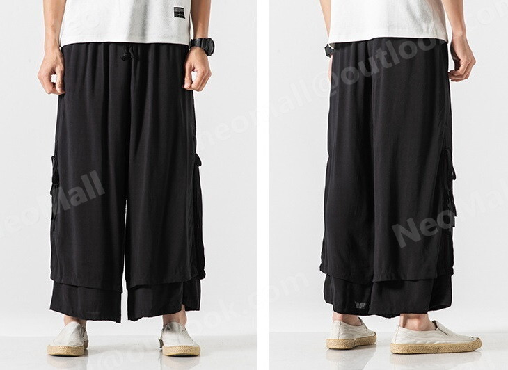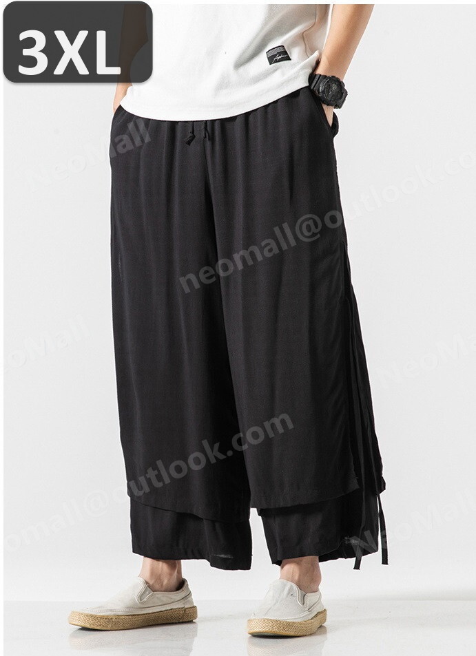 お買い得☆メンズ ワイドパンツ ブラック 3XL カジュアル ロングパンツ スウェット 無地 ポケット付 オールシーズン【066】