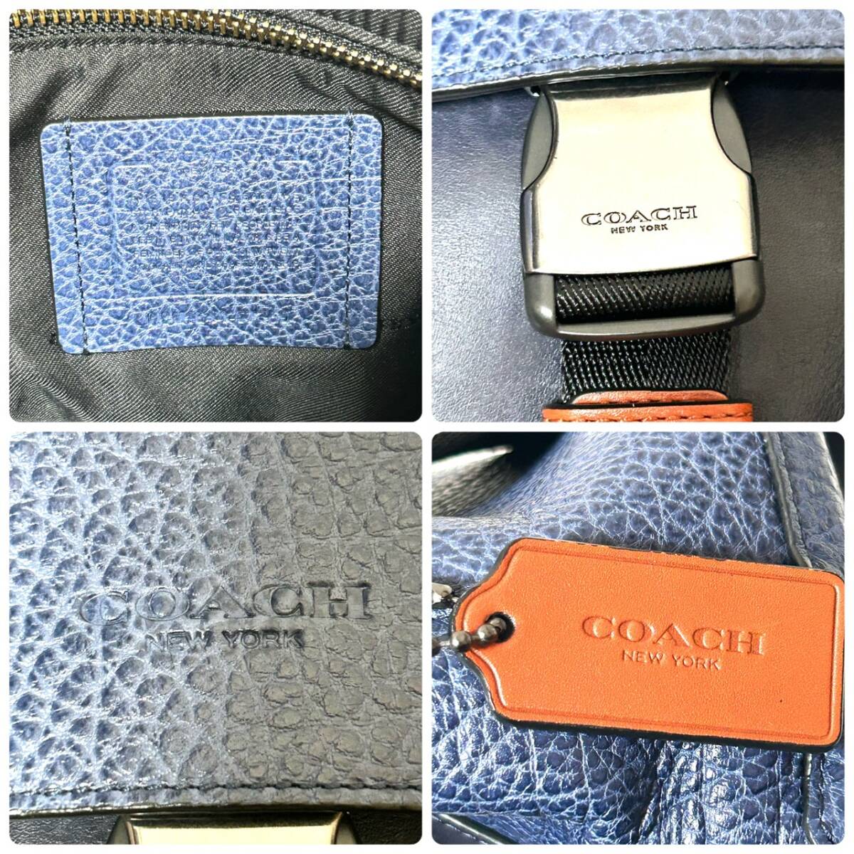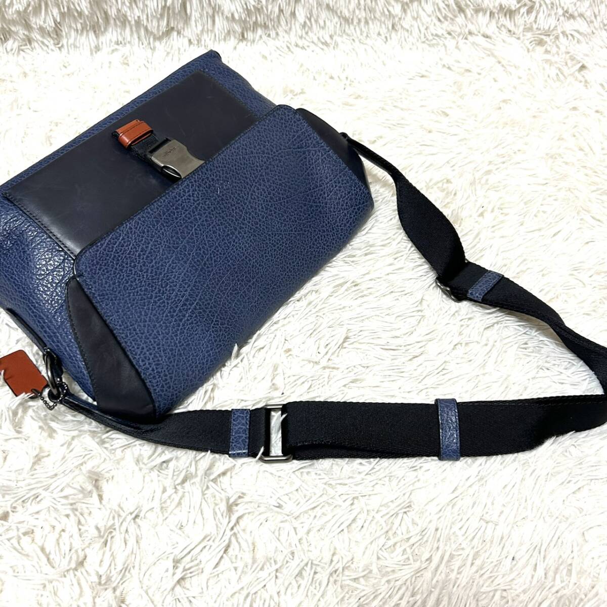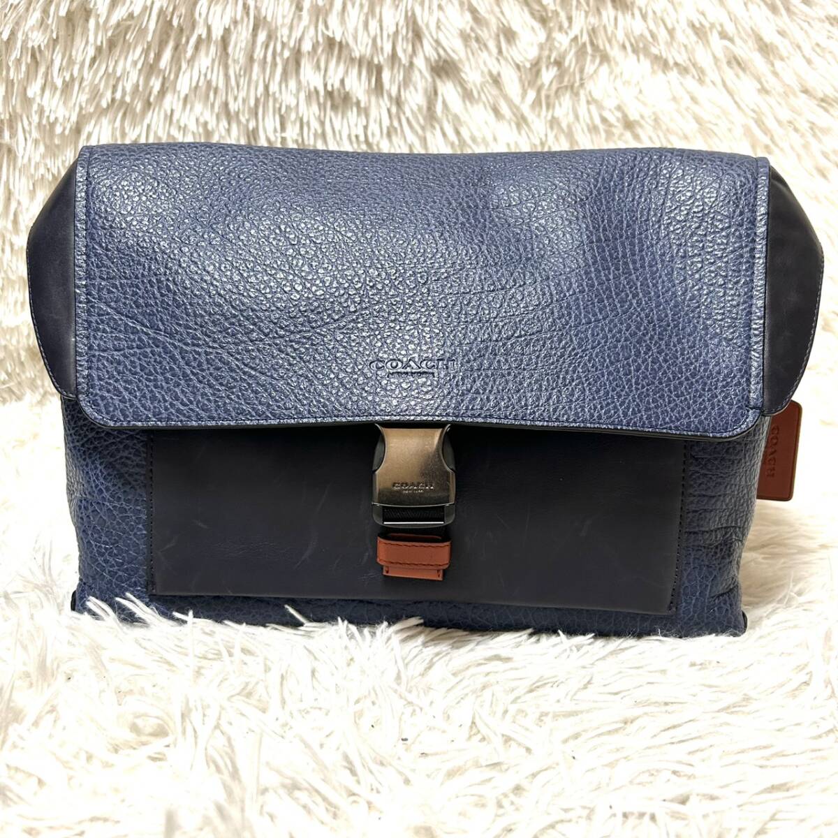 希少 近年モデル 美品 COACH コーチ メンズ マンハッタン バイクバッグ メッセンジャーバッグ 斜め掛け ショルダー レザー ビジネス 紺