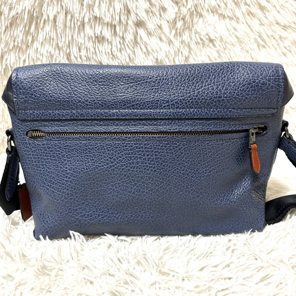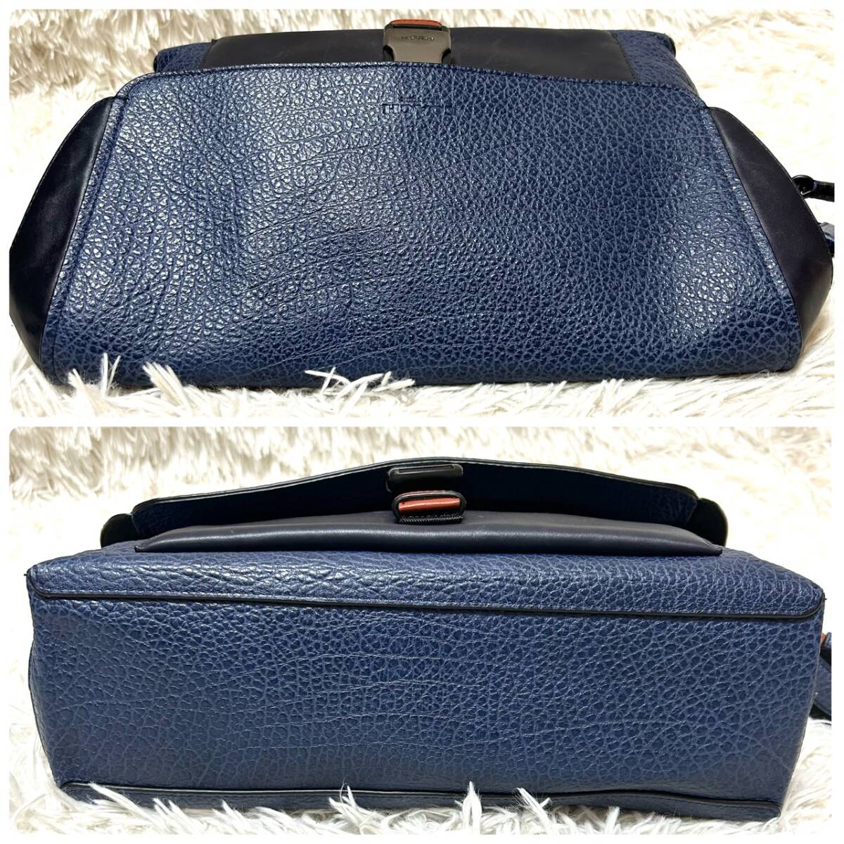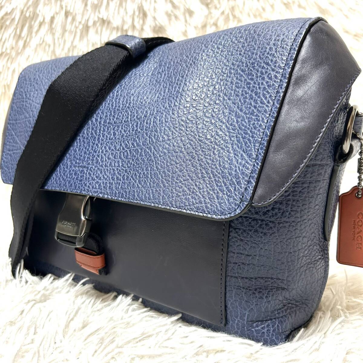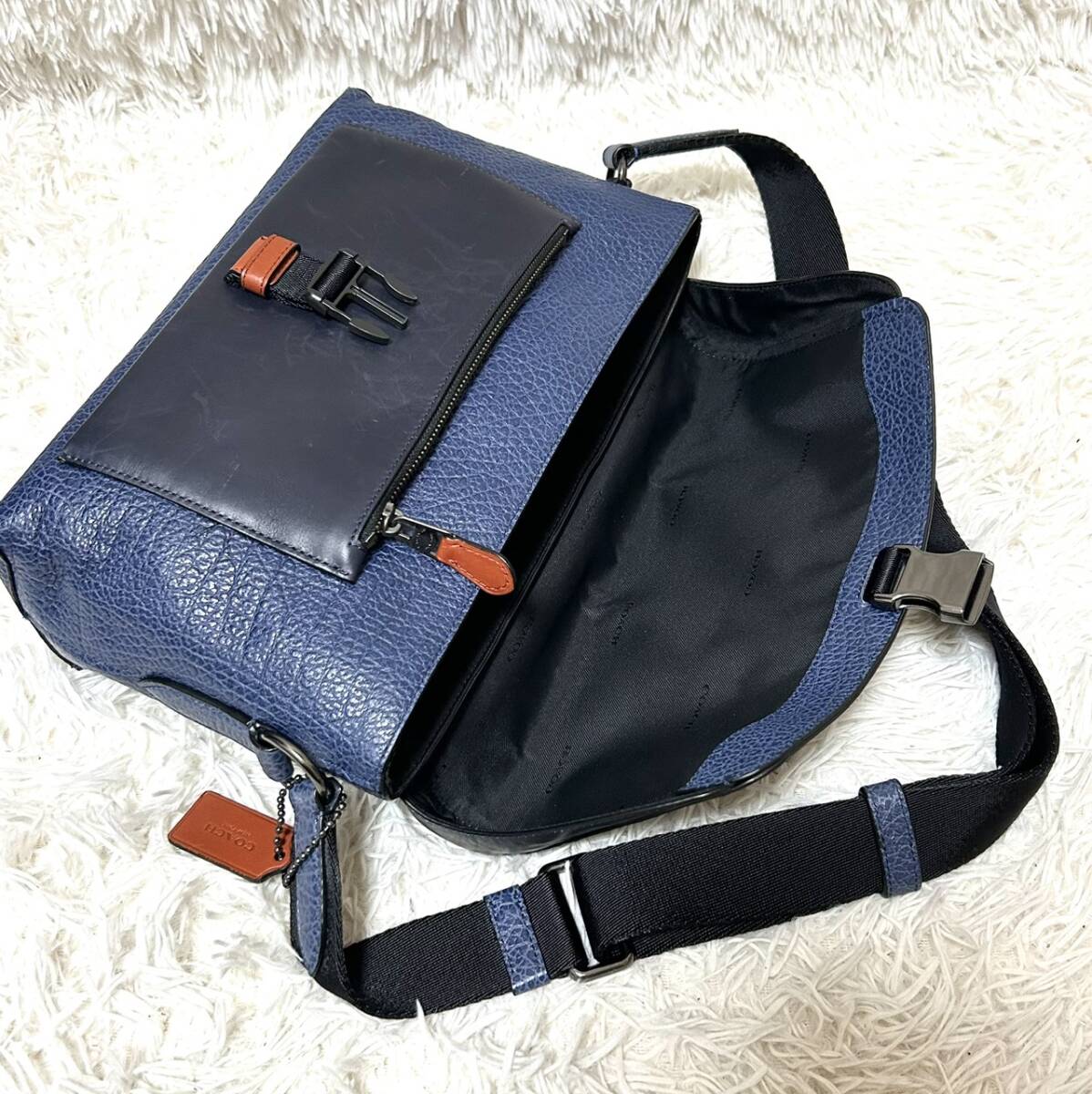 希少 近年モデル 美品 COACH コーチ メンズ マンハッタン バイクバッグ メッセンジャーバッグ 斜め掛け ショルダー レザー ビジネス 紺