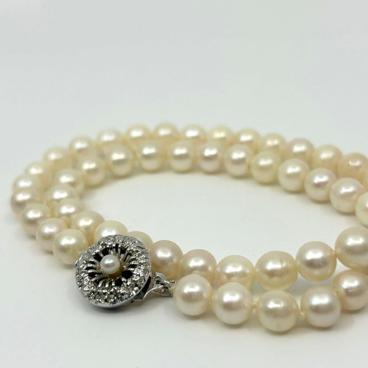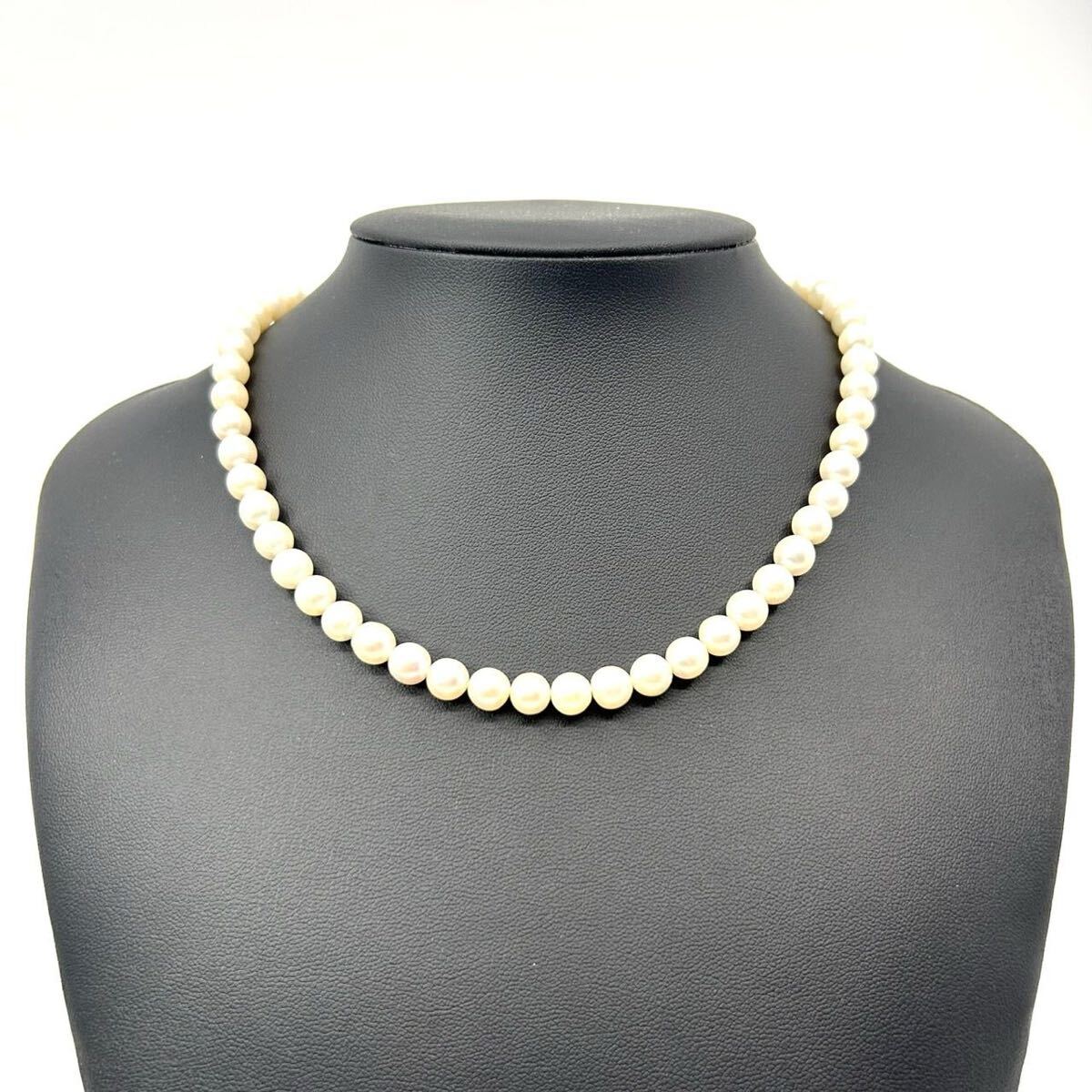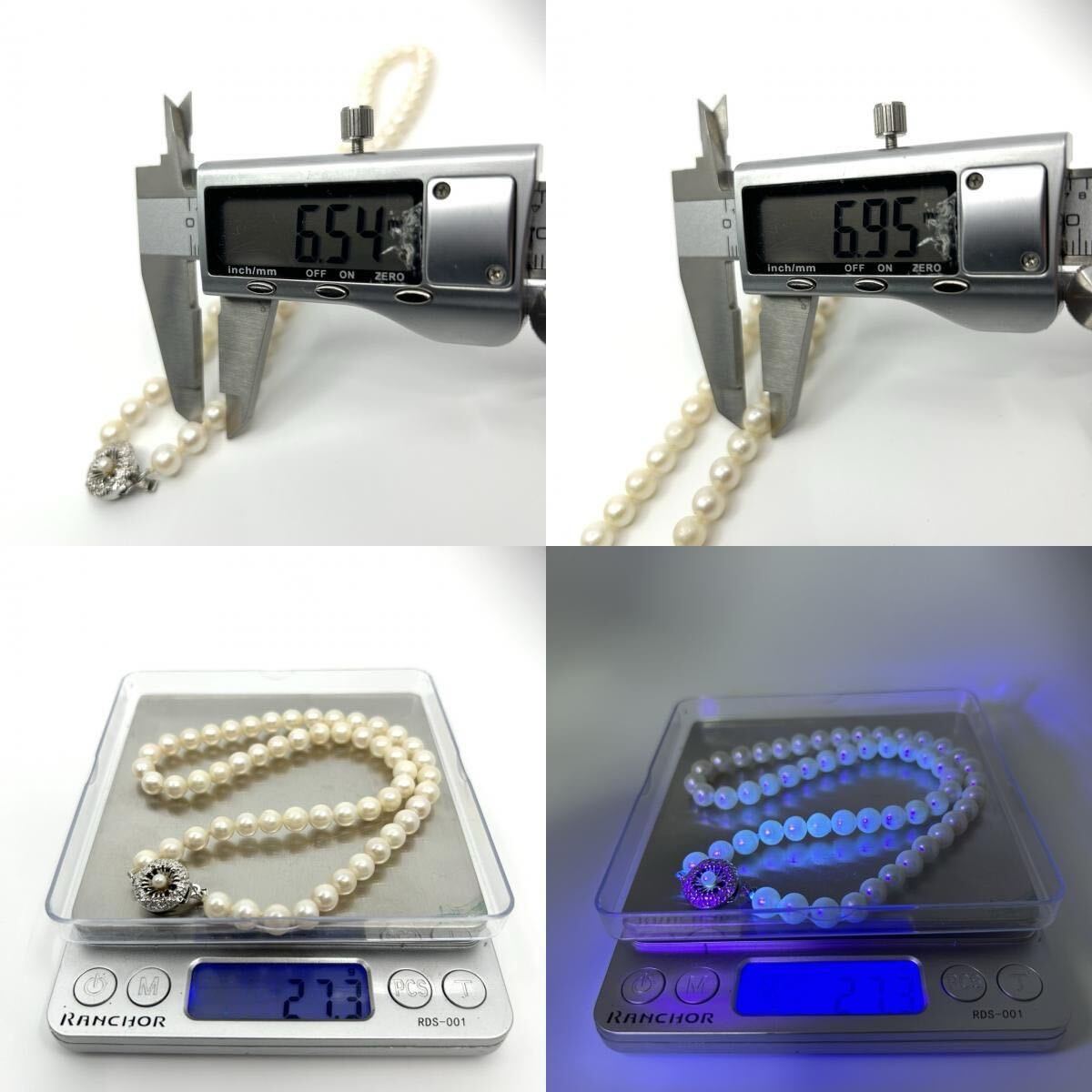 上品な艶めきを放つあこや真珠を贅沢に連ねた、美しい佇まいのパールネックレスです。6.5〜6.9mm珠ならではの均一なフォルムと自然な光沢が首元を優雅に彩り、フォーマルシーンに一段上の品格を添えてくれます。シルバー製の留具が程よいアクセントとなり、クラシックでありながら現代的な清楚さも併せ持つ逸品です。