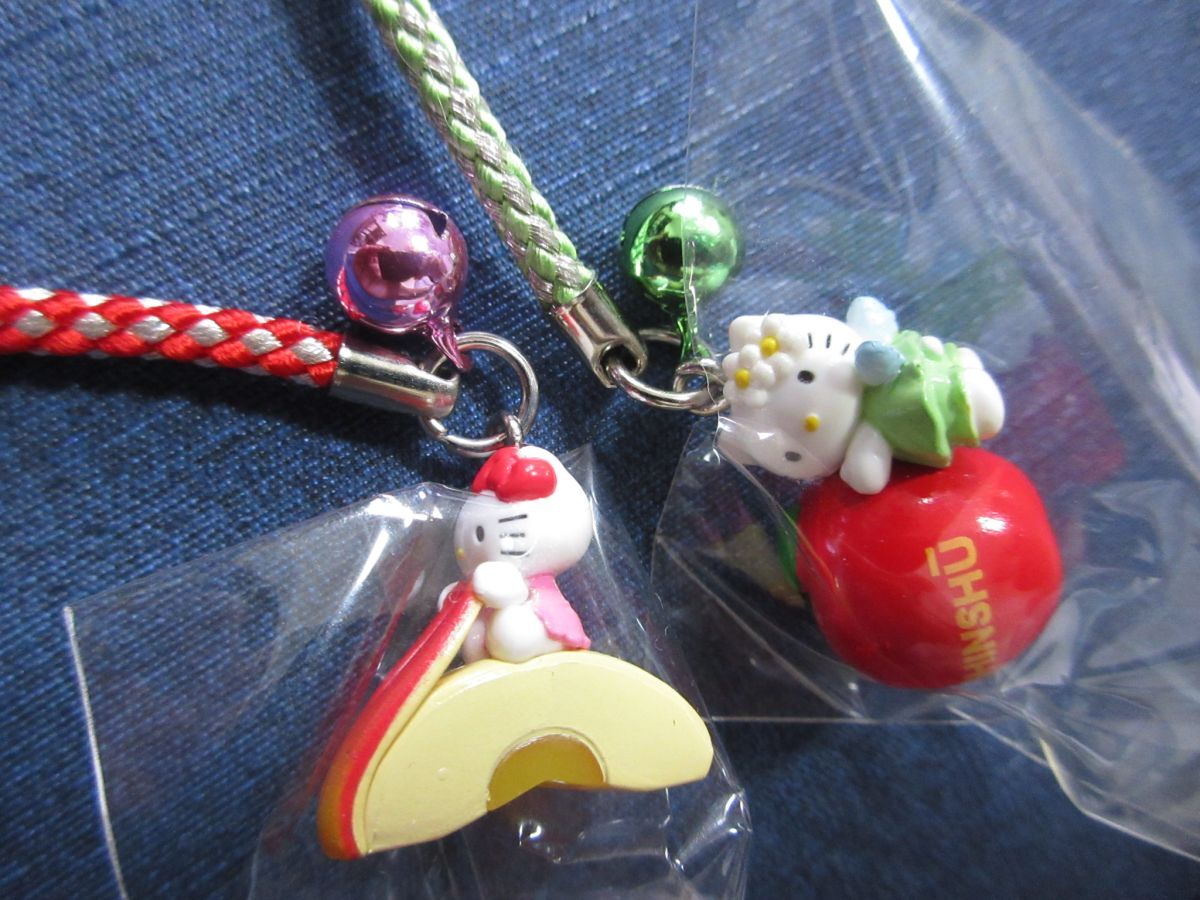 N2412Y 信州限定 Hello Kitty ハローキティ ストラップ 根付 ご当地 りんご リンゴ うさぎりんご カットリンゴ 2005 2008 SANRIOサンリオ