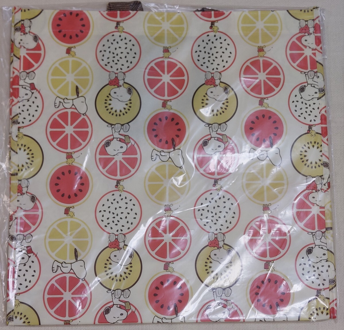 【100スタ・即落有り・〒送料別】スヌーピートートバッグ(フルーツ柄)SNOOPY/PEANUTS 大型エコバッグ/お買い物バッグ AOKI 未開封新品