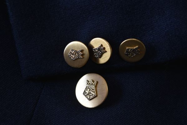 ★Aquascutum★アクアスキュータム★英国製★ 品格ある大人に似合うネイビーのダブルのジャケット ロゴ入り金釦の紺ブレ12 L~LL 10