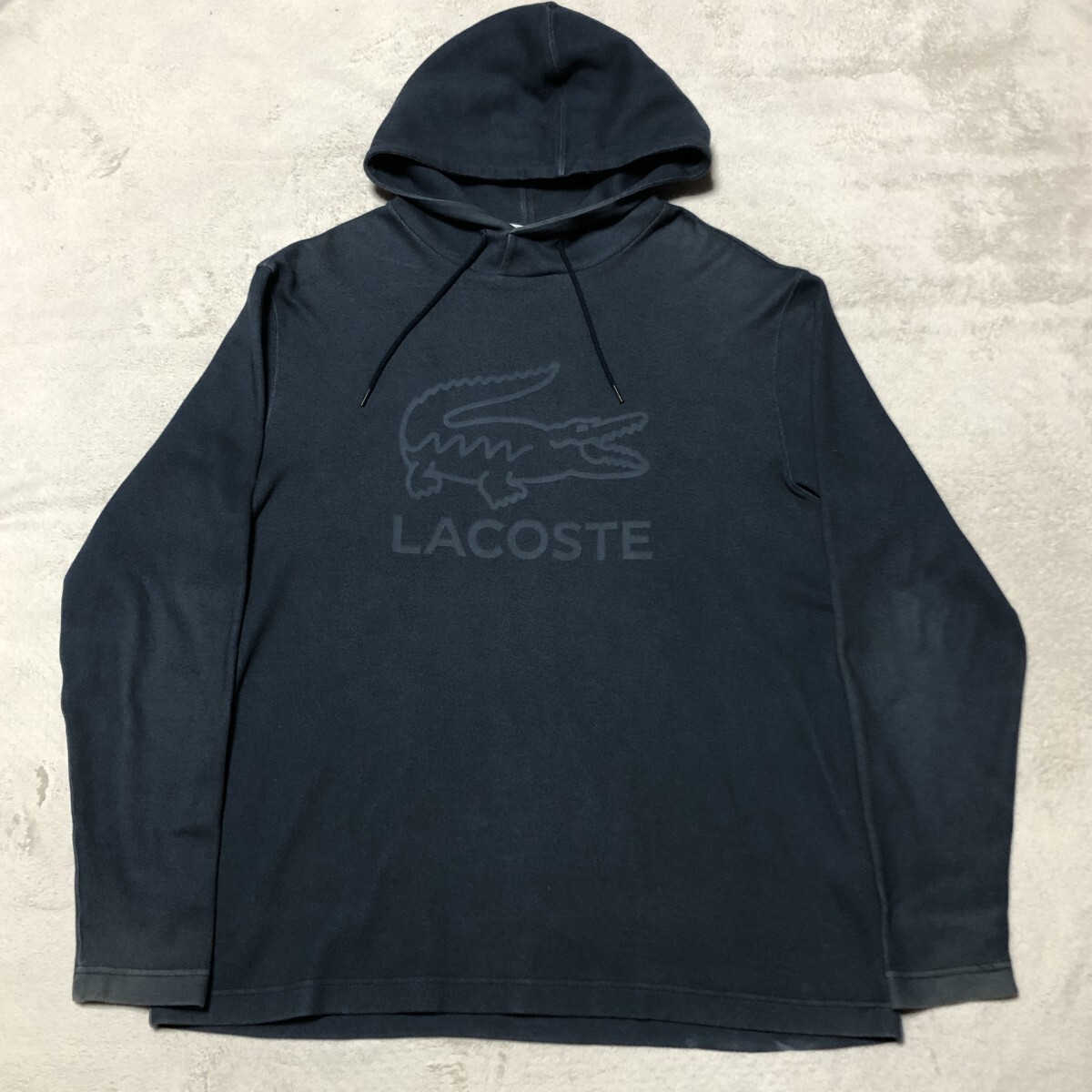 ラコステ LACOSTE ビッグワニロゴ プルオーバーパーカー フーデット ネイビー系 人気の大きいサイズ 5サイズ Lサイズ