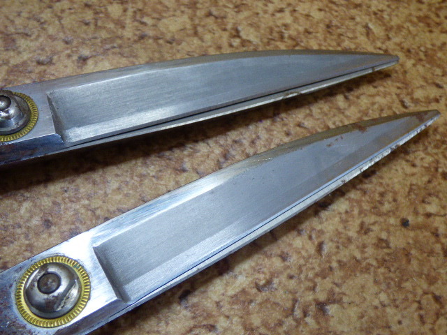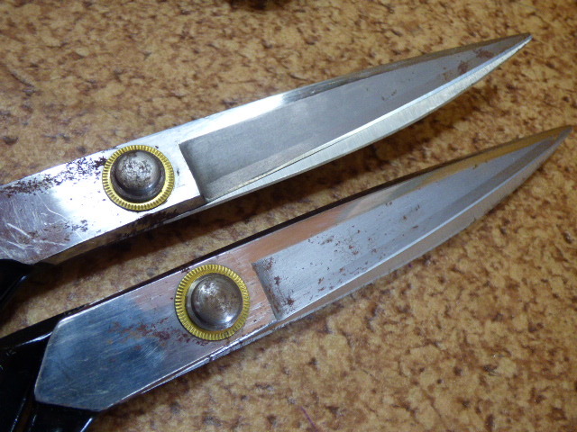 | 商品説明 複数詳細写真←Googleフォト 全長約265mm 刃渡り約110mm 重量約234g ☆コミに『TOBASAMI』東鋏のシールが貼ってあります ※錆止めの油がたくさんついていたので、拭いてみましたが拭き残りがあります。 発送は油が付いた状態です。写真でご確認ください。 ※※※※※※※※注意事項※※※※※※※※※※※ 加治屋、ハサミ製造元業者より在庫しておられたハサミを大量に手に入れました。 小売店卸し前の未使用品のため通常より大幅にお安く出品できていますのでご入札お願いします。 私はハサミに詳しいわけではないので使用用途、名称などよく分かりませんが 現状の状態での出品となります。 金属製品のため未使用品ですが保管環境により湿気などで一部サビ、汚れ、変色などが見られます。 写真はその一例ですが写真に写っていない、キズ、汚れ、錆などもあるものとしてご了承下さい。 メンテナンスを怠らなければ永く使っていただける良い商品だとお聞きしています。 数ある商品の中から試し切りできるものはしてみました。びっくりするほどすんげぇ良く切れました! 中にはサビを防ぐためにグリス・油のようなものがぬられた商品があり ベタついた状態のままの商品発送となりますので、ご使用の際は清掃などをされた上でご使用いただくことをご了承ください。 商品ランク(ランクの記載のない商品もございます)