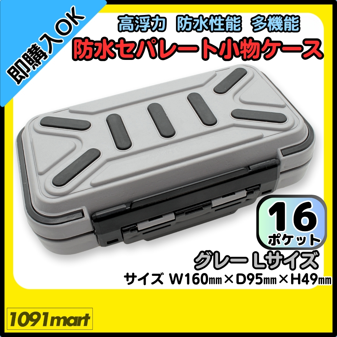 【送料無料】防水セパレート小物ケース グレー Lサイズ 16ポケット タックルボックス ツールケース 小物ケース 釣具 小物収納  釣り針 ウキ止め