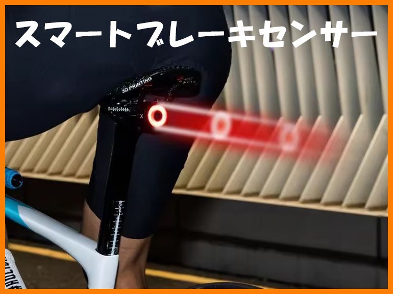 主な特徴は、アルミ合金製・充電式・IPX6防水・自動点灯・ブレーキセンサー付き。