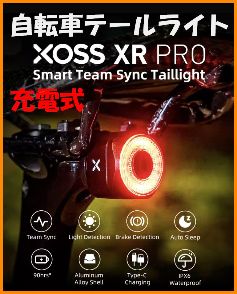 【送料無料・未使用】自転車テールライト★XOSS XR PRO★アルミ合金製 充電式 IPX6防水 自動点灯 ブレーキセンサー付き