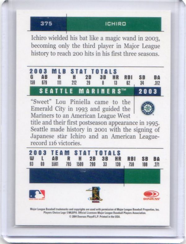 | ★☆イチロー カード Vol.2381 2004DONRUSS TEAM HEROES #375☆★ | |