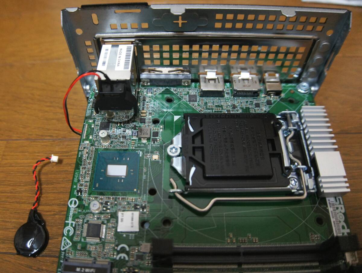 1台目は、メモリも全2チャンネル分を認識できています。BIOS用電池が劣化気味かもでしたので、手持ちのものに変更しています(厚みの関係でLANコネクタ部に移動。外したオリジナルの分も添付しておきます。お好みで見直して下さい)。