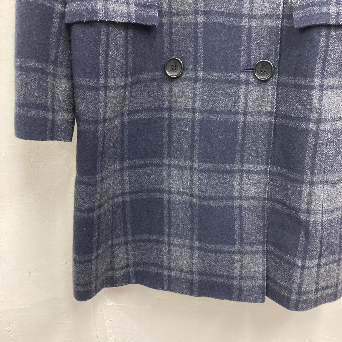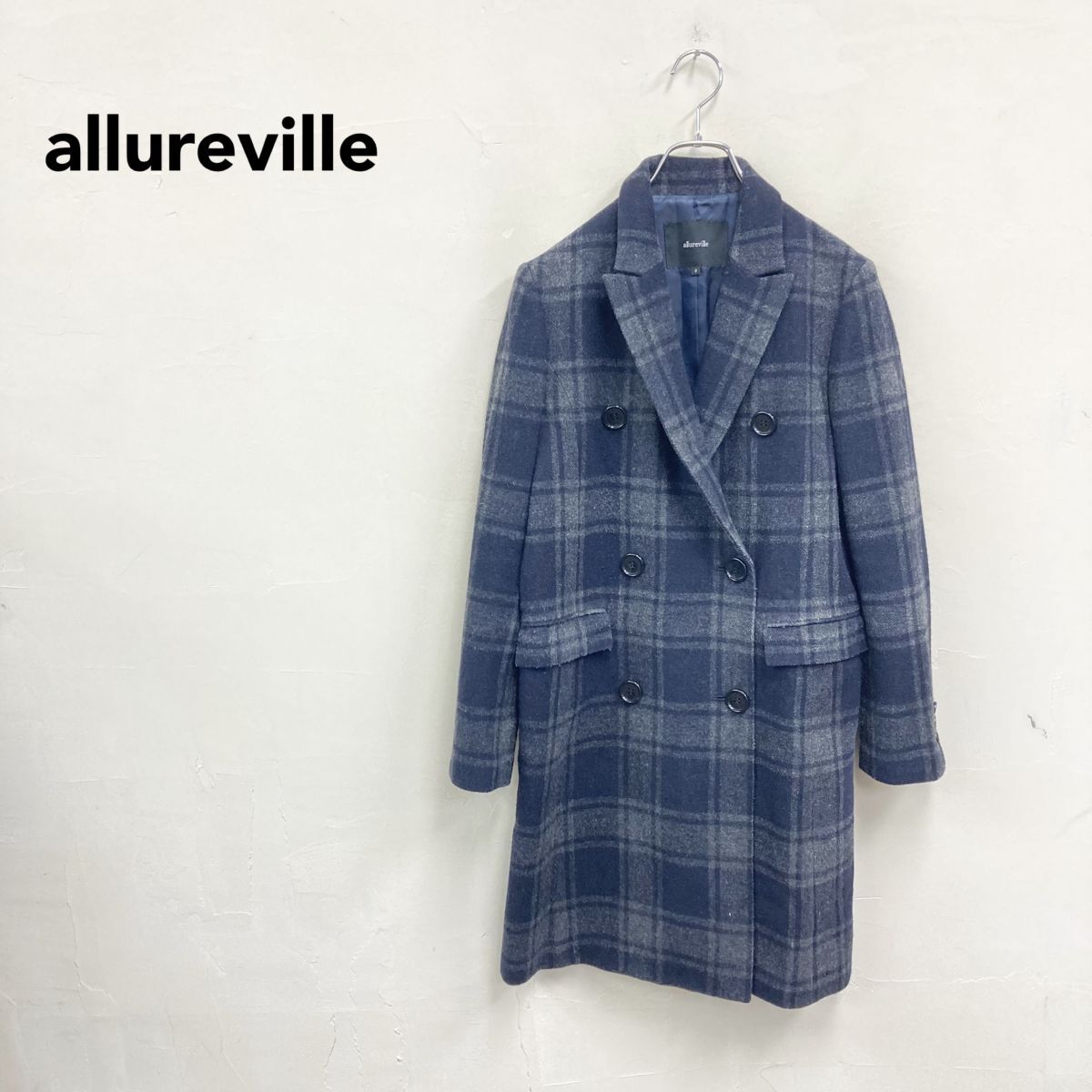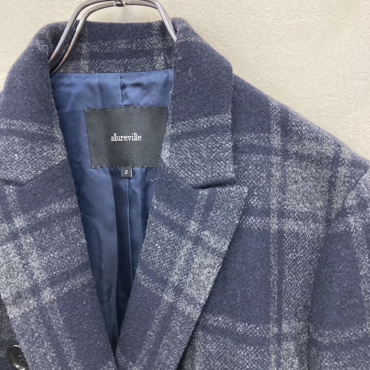 2N1765-J◆日本製 allureville アルアバイル チェックダブルコート◆サイズ2 レディース ウール混 毛70% 総柄 秋冬アウター ポケット