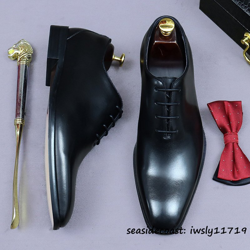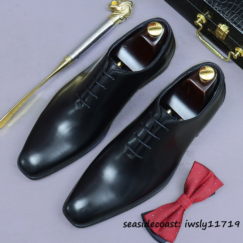 定価11万★最高級 本革 ビジネスシューズ メンズ イギリス風 職人手作り レザーシューズ 牛革 革靴 紳士靴 冠婚葬祭 新品 ブラック 25.0cm