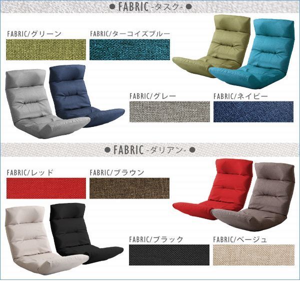 日本製リクライニング座椅子(布地、レザー)14段階調節ギア、転倒防止機能付き