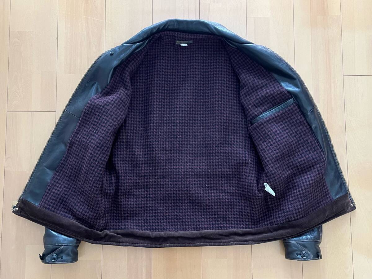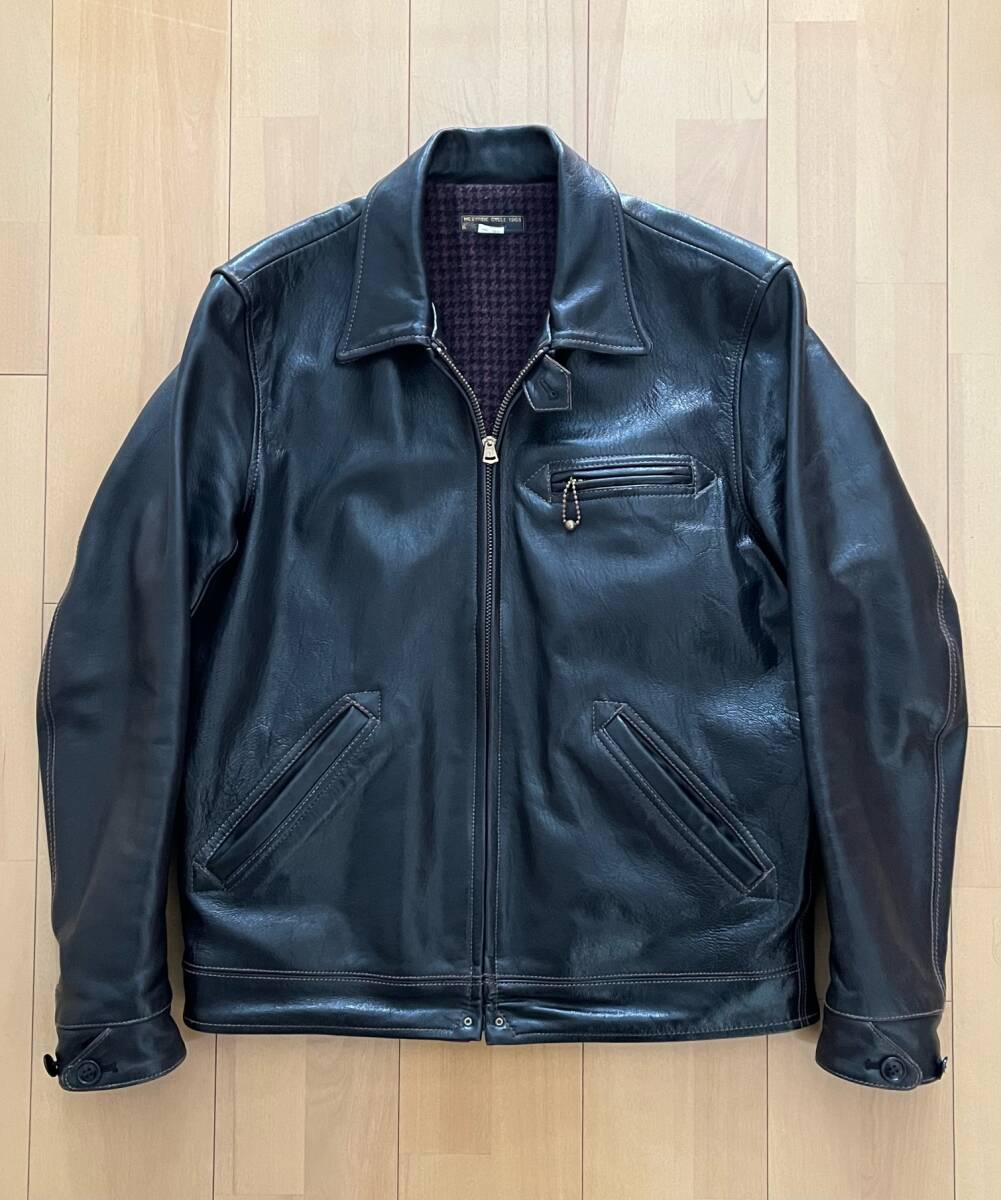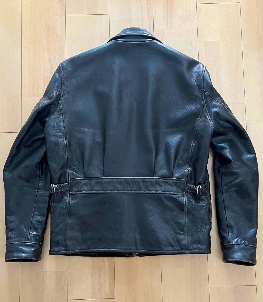 WESTRIDE CYCLE TOGS 40s STYLE  LEATHER  JACKETです。TOP  NOTCH  SPORTS  JACKET  2、サイズ38、カラー DARK  BROWN  こげ茶 、サイズは計測で、身幅55、肩幅47、着丈65、裾幅50、袖丈62、測り方により多少の差はでると思いますので、参考程度でお願いします。山羊革、フルベジタブルタンニンです。レザーのユーズドですので擦れ等はあると思いますが、裏地も含めて状態は良いと思います、画像で確認お願いします。神経質な方、完璧を求める方のオークションへの参加はご遠慮お願いします。ノークレーム、ノーリターンでお願いします。