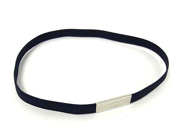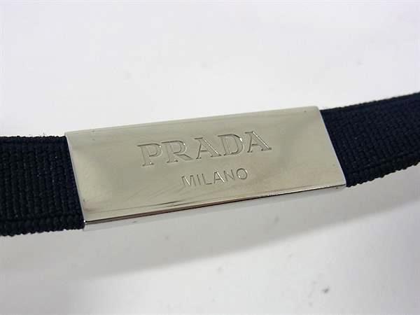 ■美品■ PRADA プラダ ゴムバンド ベルト メンズ レディース ネイビー系×シルバー系 DJ8454