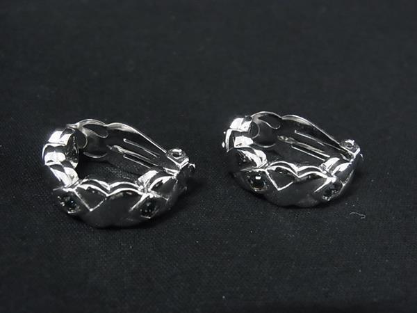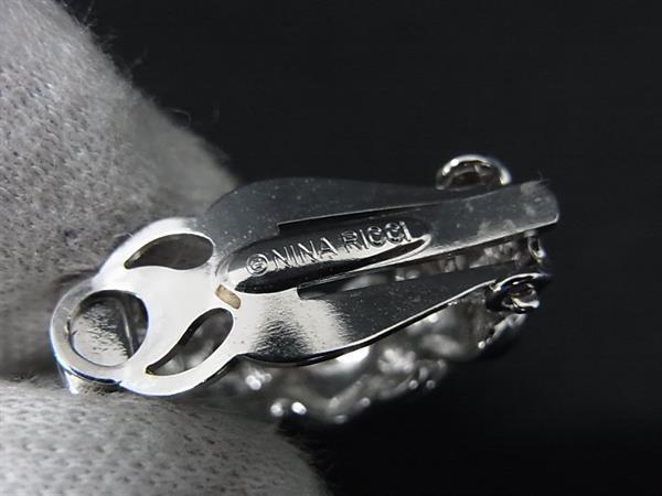 ■美品■ NINA RICCI ニナリッチ カラーストーン クリップ式 イヤリング アクセサリー レディース シルバー系×グリーン系 DK0285