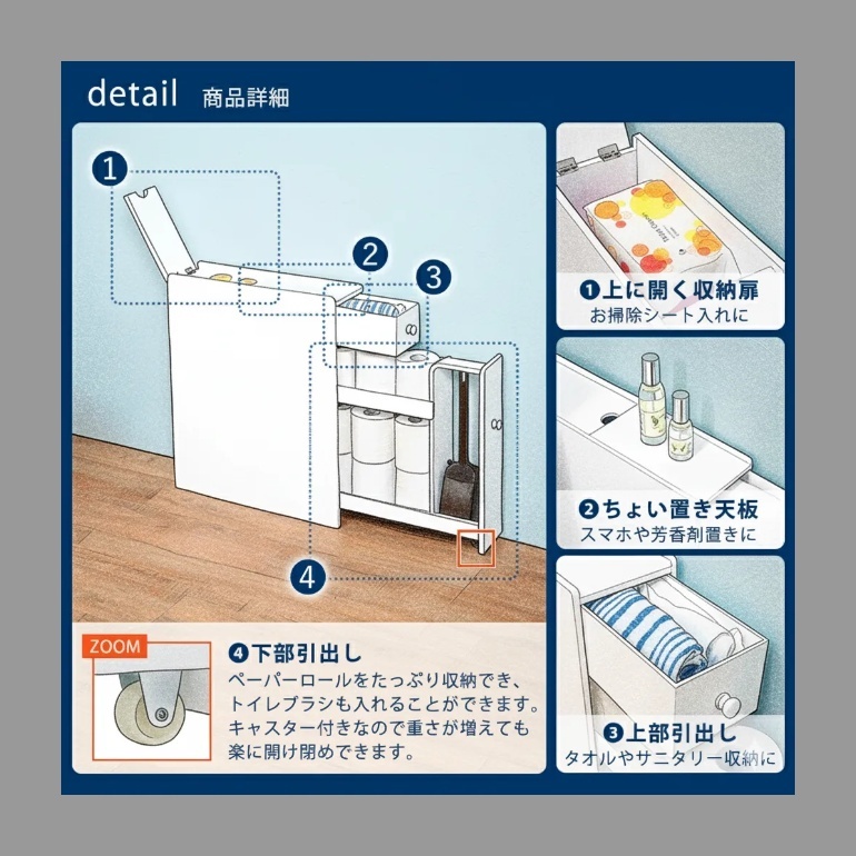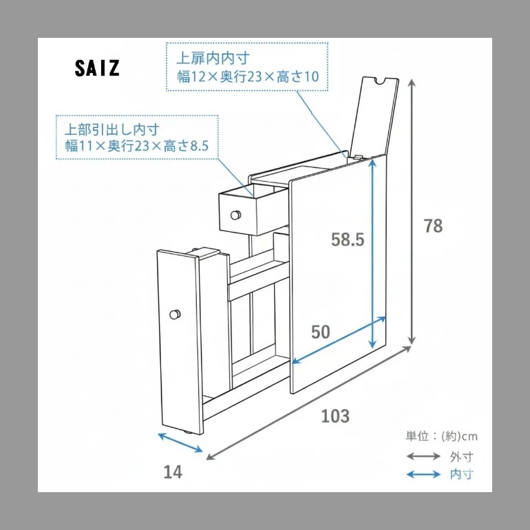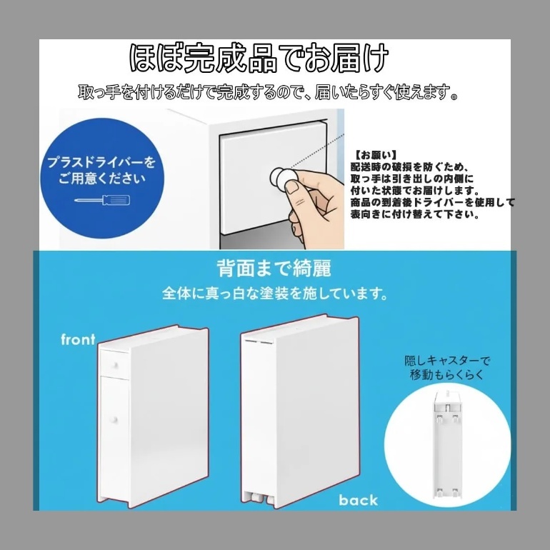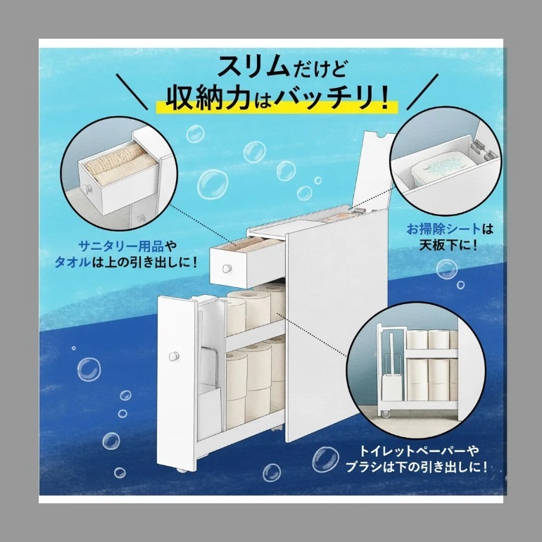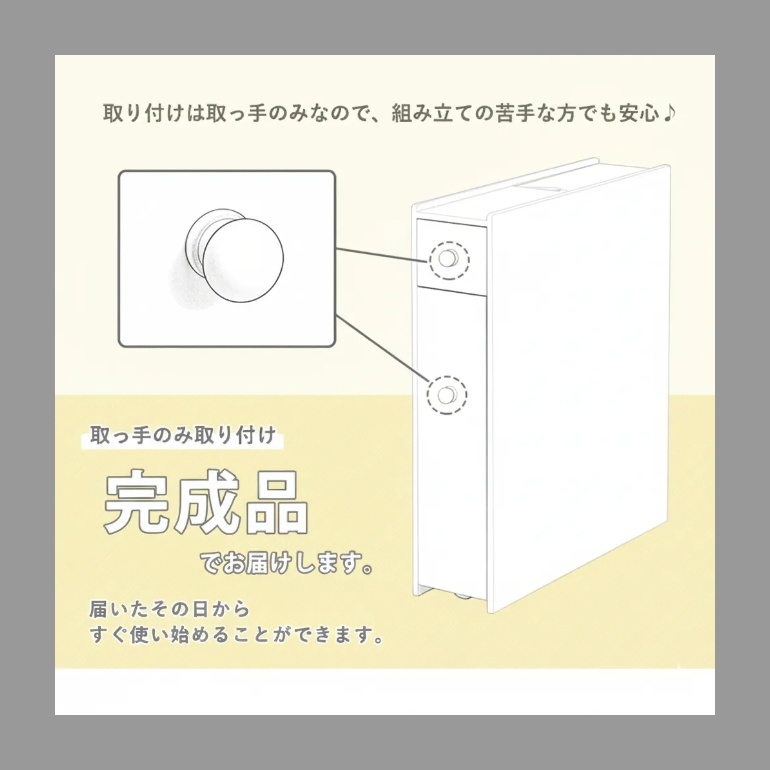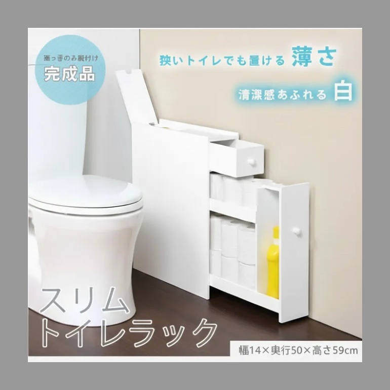 【新品・未使用】 スリムトイレラック トイレットペーパー入れ 完成品ット 【新品・未使用】 アウトレット商品 アウトレット理由 ① ■ アウトレット商品とは ① 写真撮影戻り品 各社通販会社などがカタログもしくは、ネットにUPするためにメーカーより取り寄せ写真撮影を したのちメーカーに戻されて帰ってき商品です。 ※ 写真撮影戻り品の為、小傷がある場合がございますので何卒、ご了承のほどよろしくお願いいたします。 目立つ傷等があれば写真にてアップしています。 ② 外箱損傷による返品商品 ③ 輸送事故による返品商品(当店で修繕もしくは損傷箇所を撮影して搭載します) ④ 商品に問題がありメーカーに戻されて帰ってき商品 ⑤ 展示品 (小傷、汚れ、等ございます。) 写真をご覧の上、ご判断ください。 ※ アウトレットにつき箱の損傷・汚れがございますので何卒、ご了承のほどよろしくお願いいたします。 | ||||