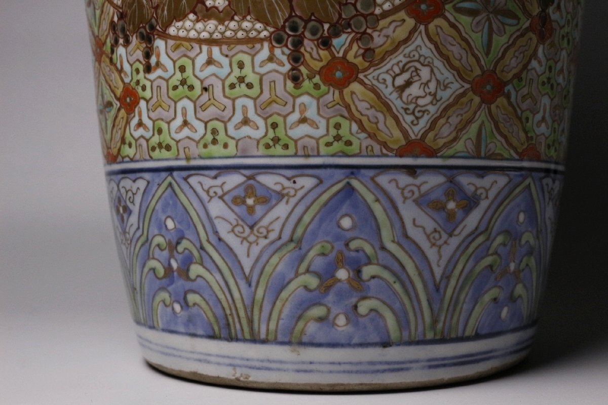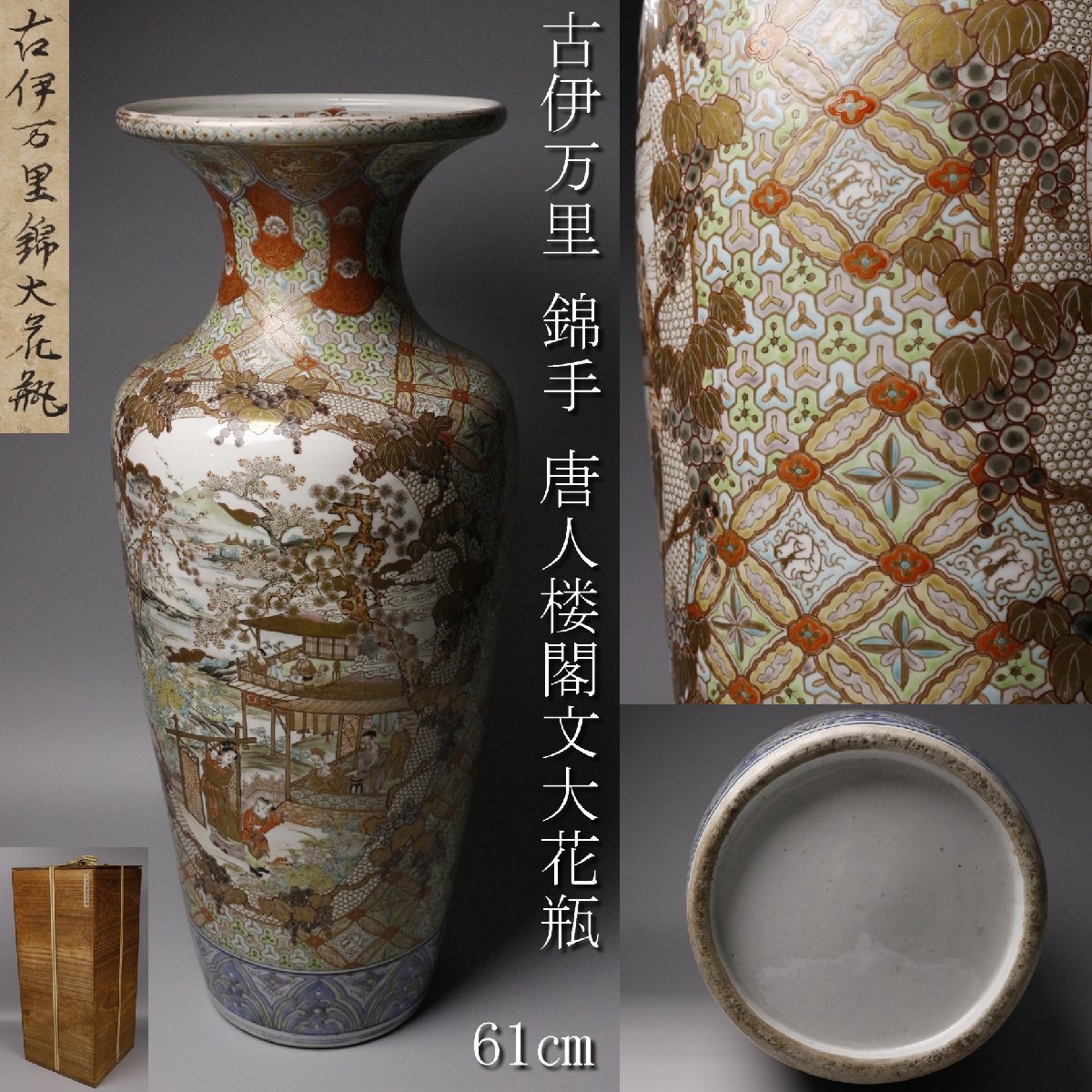 * * * 商品詳細 * * * ここでしか出逢うことのできない唯一の美をご紹介させて頂きます。 豪華絢爛な意匠が目を惹く古伊万里 錦手 唐人楼閣文大花瓶のご紹介です。 鮮やかな色絵に、輝く金色の色彩は優雅かつ繊細で、 細やかな文様の中央には お屋敷の中で朗らかに過ごす唐人たちが緻密かつ表現豊かに描かれています。 咲き乱れる花々が添えられた、当時の高貴な人々の華やかな生活の絵図は色鮮やかで、 正に豪華絢爛の言葉がぴったりな 古伊万里の大花瓶でございます。 この機会にぜひお手元にてご堪能ください。 ■商品内容/花瓶、箱 ■サイズ/横26cm×高61cm 箱:横28.5cm×高65cm ■状態/スレ、傷、欠け、窯被、剥げ、汚れ、 箱にスレ、傷、欠け、腐食、シミ、蓋に曲がり、紙に焼け、剥げがございます。 ※写真にてご確認、ご了承の上ご入札下さい。 ![]() * * * 支払詳細 * * * Yahoo!かんたん決済 * * * 発送詳細 * * * 入金確認後3営業日以内に発送致します。 ※直接引き取りも可能です。 60~160サイズにつきましては 佐川急便、ゆうパックのどちらかで発送いたします。 ゆうパック発送の場合、弊社の発送日から追跡サービスに問合せ番号が反映されるまで 約1日ほどお時間がかかりますのでご了承下さい。 * * * 注意事項 * * * 運送中の破損があった場合は速やかに当社までご連絡下さい。 保険を利用するのに受取連絡後に運送会社による現場での破損状況確認が必要となります。 勝手に返送されますと保険の適用外となりますのでご注意ください。 * * * * * * お問い合わせ:082-236-8669 |