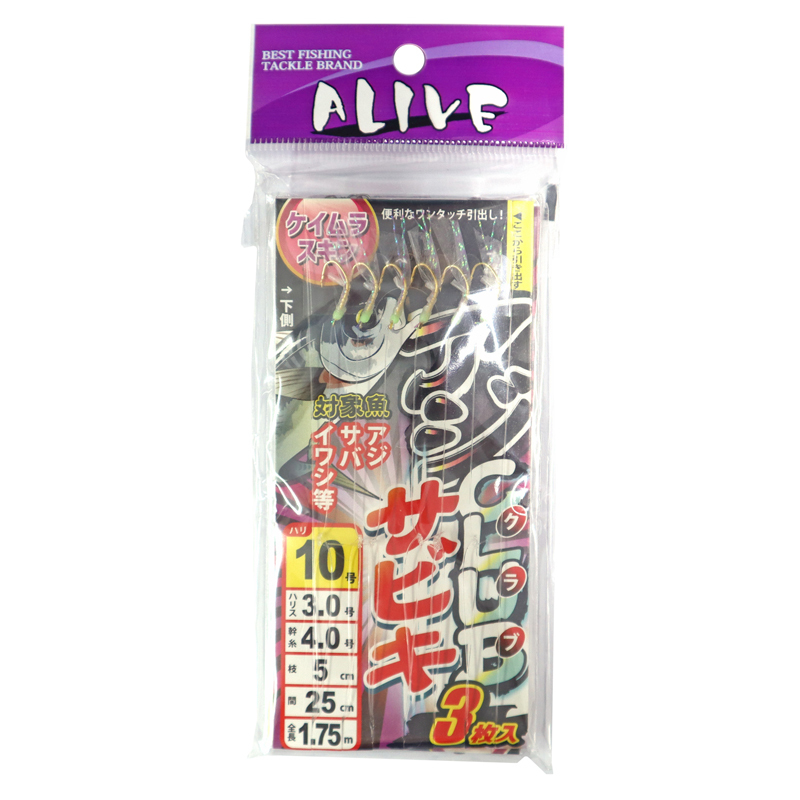 | 商品名 | アジクラブサビキ 3枚入 ケイムラスキン 10号 サビキ仕掛け 釣り ALIVE アライブ KMY-1624 波止サビキ | ||||||||||