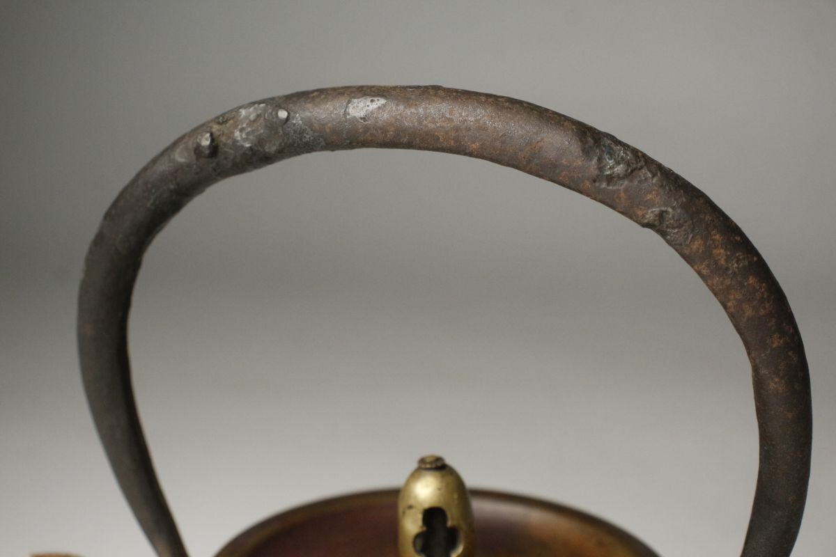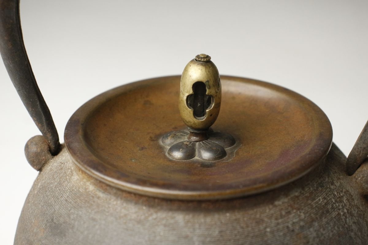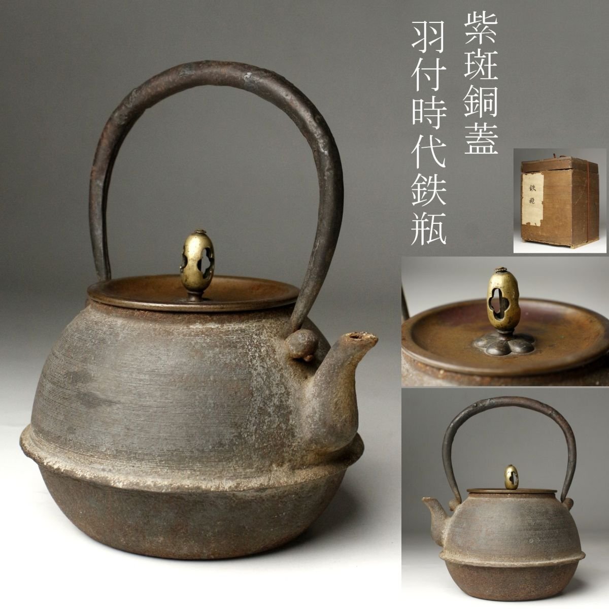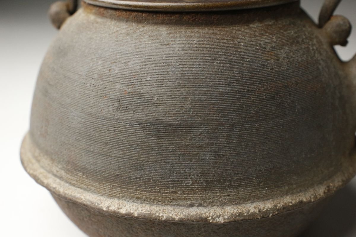 * * * 商品詳細 * * * ここでしか出逢うことのできない唯一の美をご紹介させて頂きます。 古鉄地は味わい深く、経年を経てきたものならではの風格を感じさせる鉄瓶のご紹介です。 整った隙の無い造形で摘みの繊細な造形等、端々に高い美意識が感じられます。 装飾などはありませんがそれぞれの質感がより良く感じられ、深い魅力があります。 現代まで大切に受け継がれてきたことが伺える、時代感じる逸品です。 ■サイズ/横15㎝×高18㎝×奥行14㎝ 箱:横15㎝×高21㎝×奥行15㎝ ■状態/スレ、キズ、サビ、底に穴、内に剥げ、 箱に腐食、割れ、欠け、キズがあり脆くなっています。 ※写真にてご確認、ご了承の上ご入札下さい。