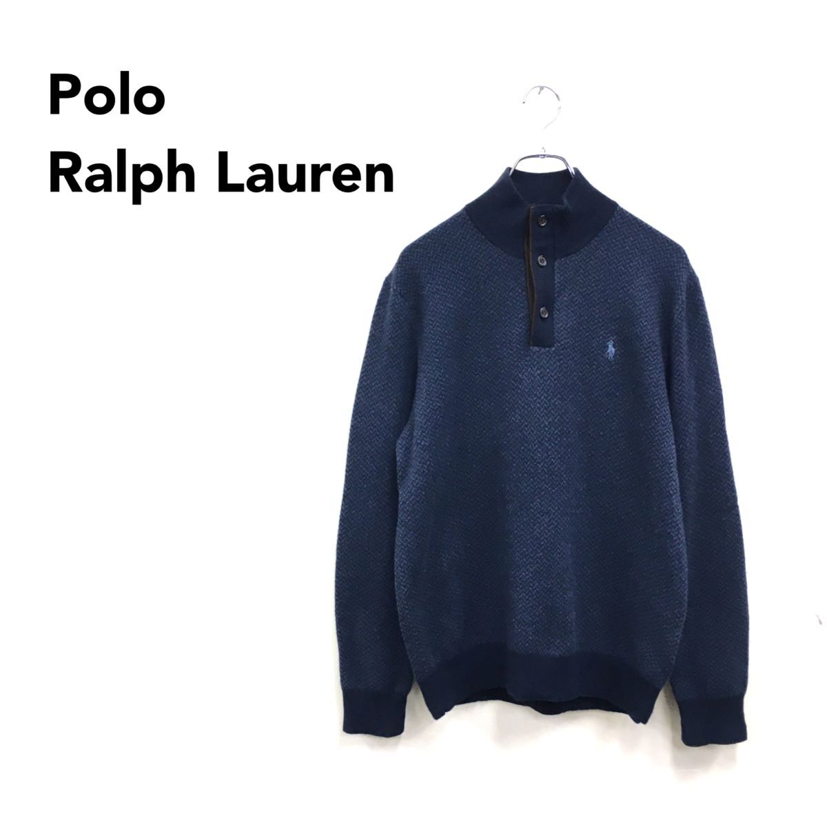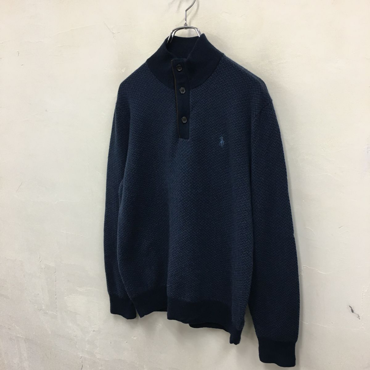 2N1890-G◆ POLO Ralph Lauren ポロラルフローレン ハーフボタンパターンニット セーター ハイネック リブカラー ◆ sizeS ネイビー ウール