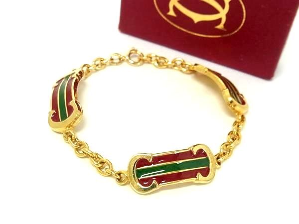 1円 Cartier カルティエ マストライン ブレスレット アクセサリー レディース ゴールド系×ボルドー系 FU4132