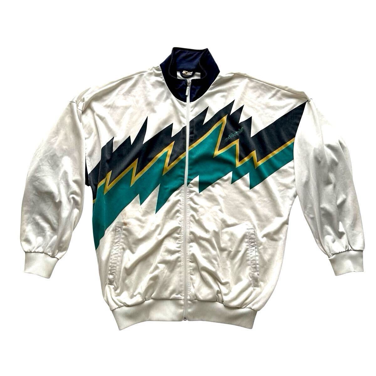 商品* 珍品! 1980年代頃 adidas 万国旗タグ 稲妻プリント トレフォイル 刺繍ロゴ トラックジャケット