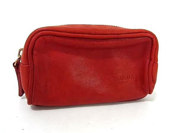 1円 PRADA プラダ レザー ミニポーチ マルチポーチ マルチケース 小物入れ レディース レッド系 FT2960