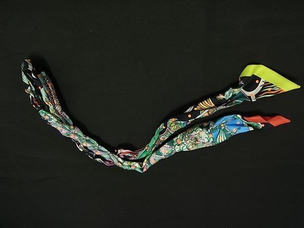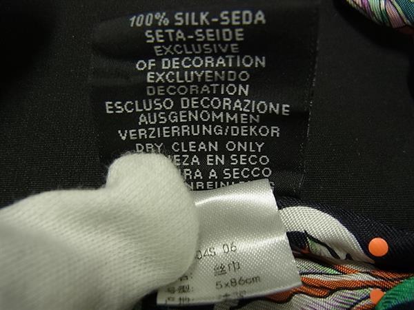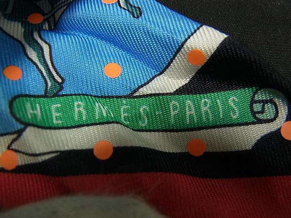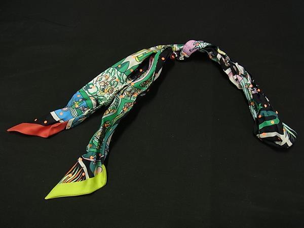 1円 HERMES エルメス Exposition Universelle【万国博覧会】シルク100% ツイリー リボンスカーフ ブラック系×マルチカラー FR5929