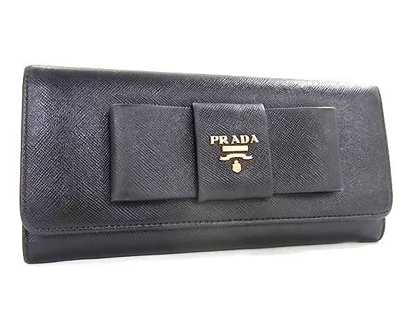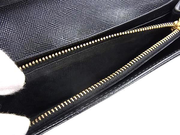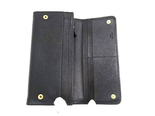 1円 PRADA プラダ サフィアーノレザー 二つ折り 長財布 ウォレット 小銭入れ 札入れ カード入れ ブラック系 FT2903