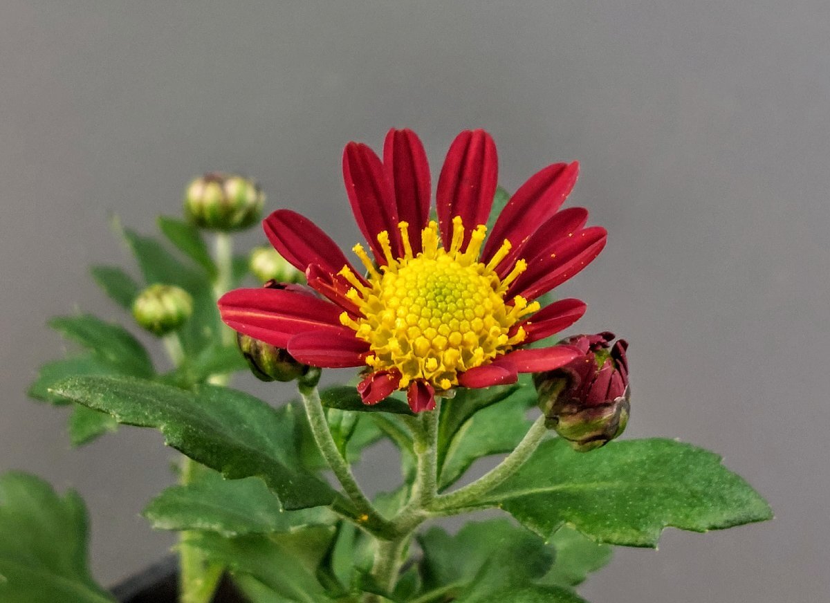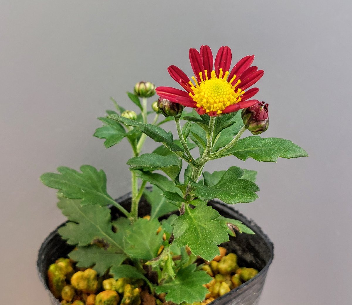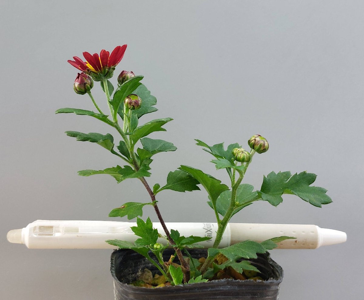 キク科の野生種のキクの園芸品種の盆栽小菊の紅雀です。極小型の佳品です。