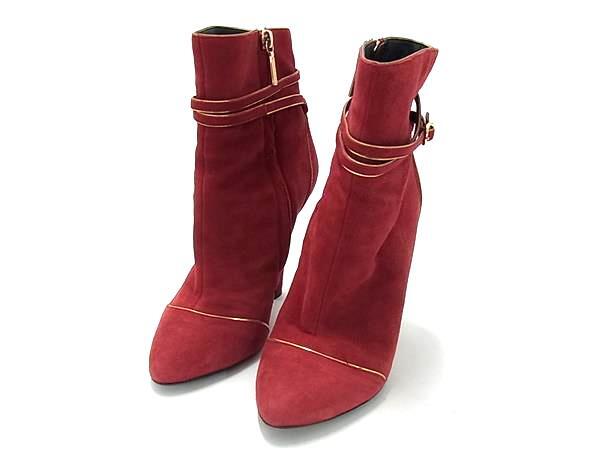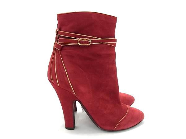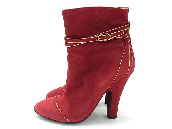 1円 ■美品■ DOLCE&GABBANA ドルチェ&ガッバーナ スエード ショートブーツ 表記サイズ:37( 約24cm) 靴 シューズ レッド系 FP3967