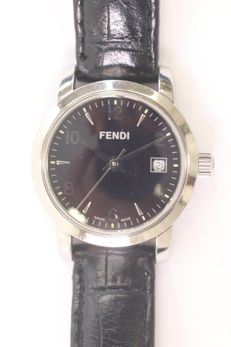 | FENDI フェンディ 2100L クォーツ デイト シルバーカラー 黒文字盤 レディース 腕時計 4241-HA | |