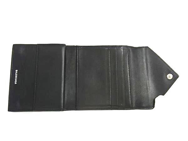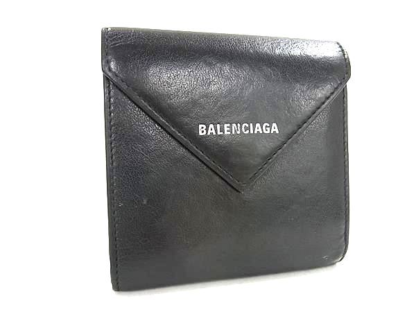 1円 BALENCIAGA バレンシアガ 637450 ペーパー レザー 三つ折り 財布 ウォレット 小銭入れ 札入れ レディース ブラック系 FT2626