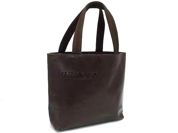 1円 PRADA プラダ レザー ロゴ トートバッグ ハンドバッグ レディース メンズ ブラウン系 GC0735