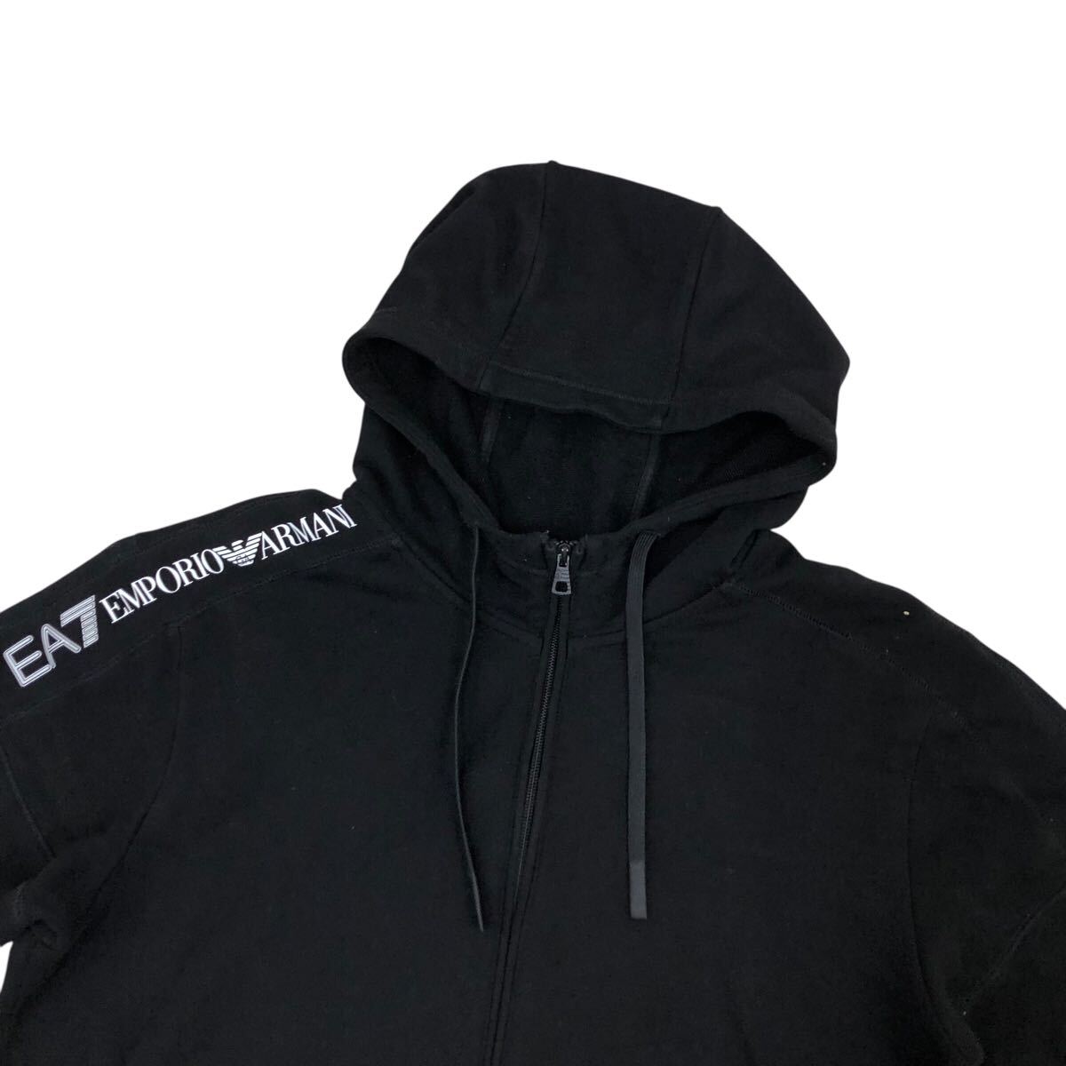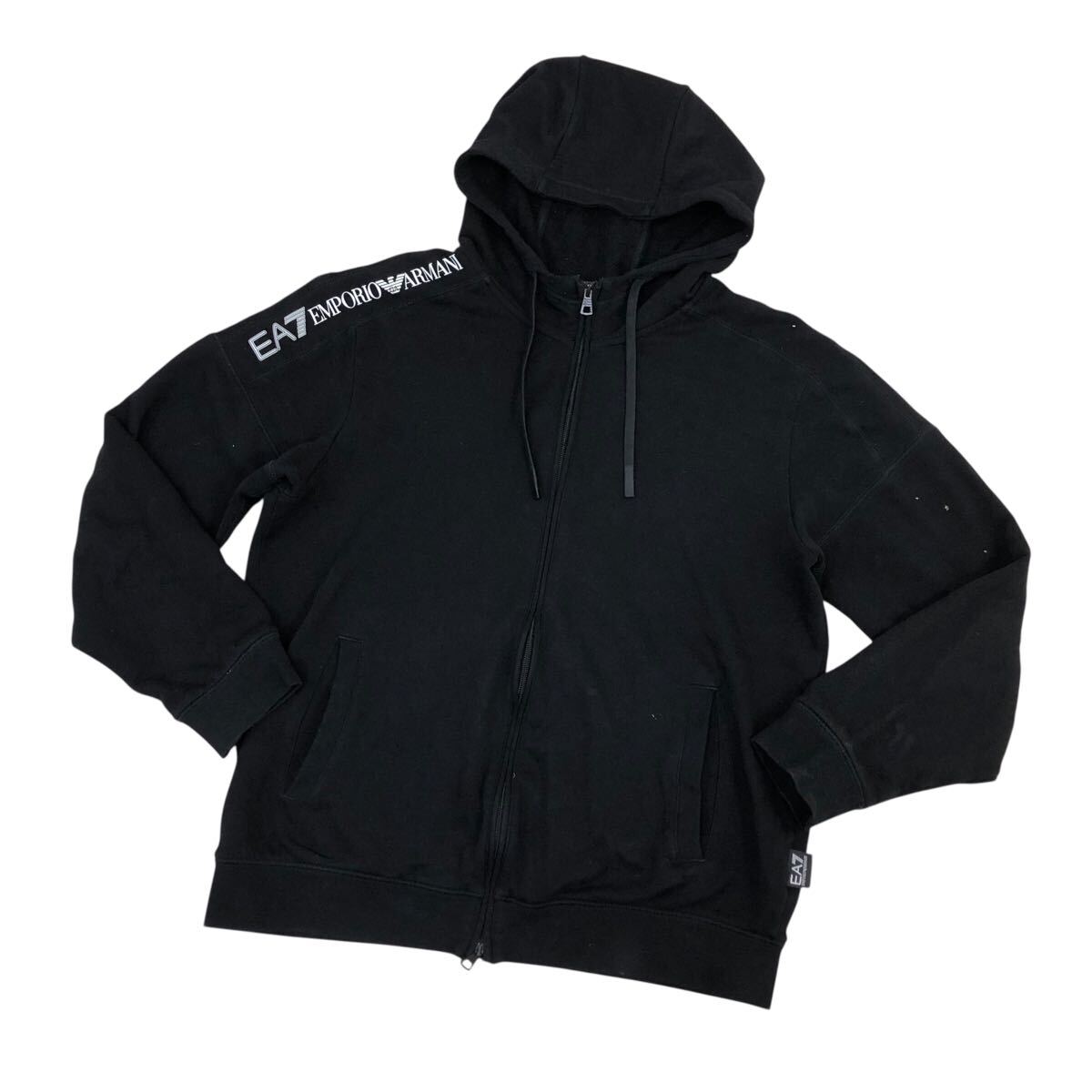 11ND335-40 EMPORIO ARMANI エンポリオアルマーニ 長袖 ジップアップ パーカー トップス 上着 羽織り コットン 綿 100% ブラック メンズ L