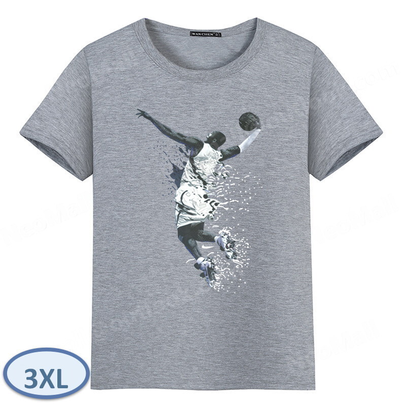 夏にピッタリ ☆ 丸首 半袖 Tシャツ【069】 グレー 3XLサイズ トップス シャツ シンプル イラスト プリント 春夏