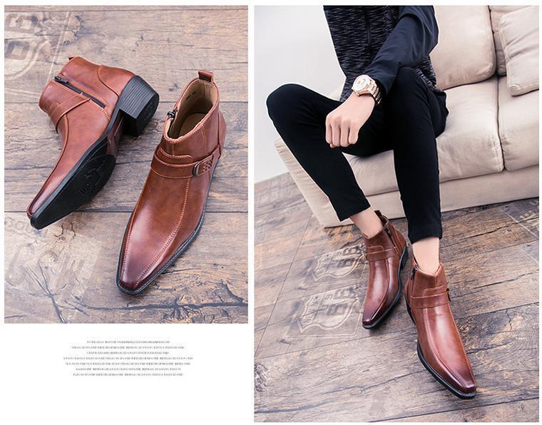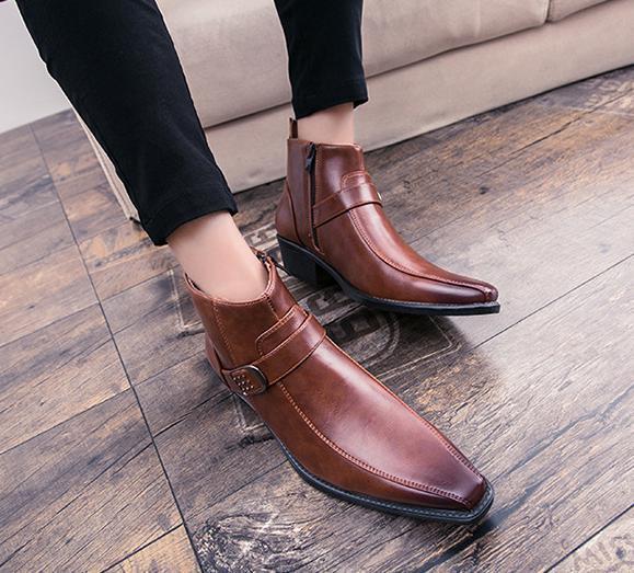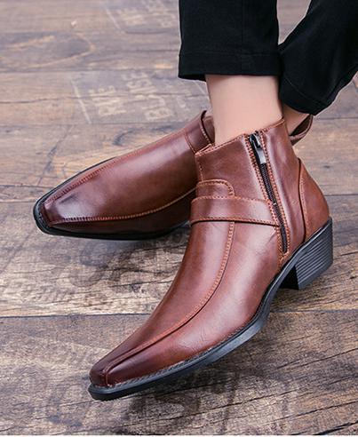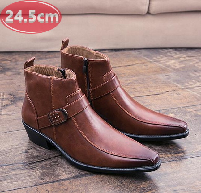 サイドジッパー メンズ ビジネス レザー シューズ ブラウン 24.5㎝ 革靴 靴 カジュアル 屈曲性 通勤 軽量 インポート品【n153】