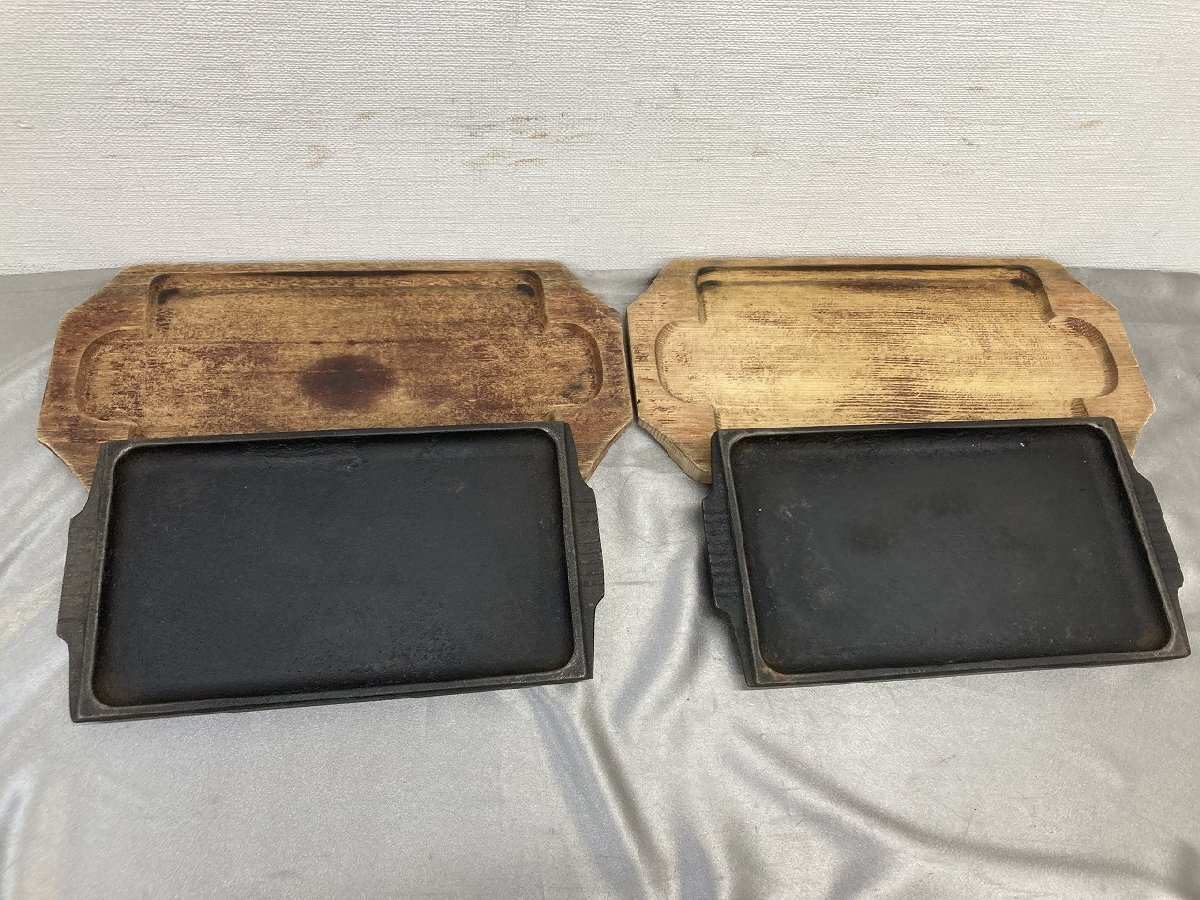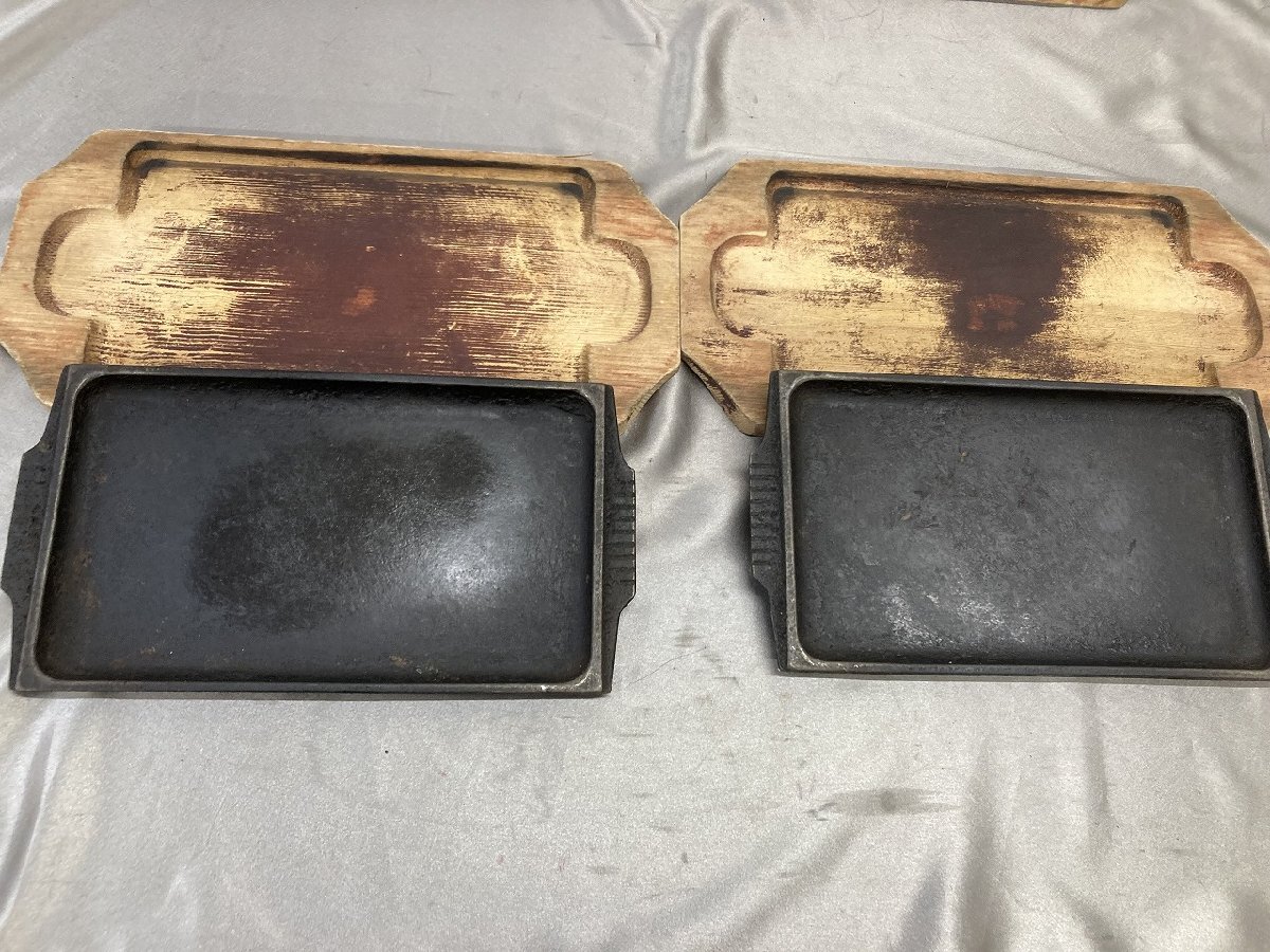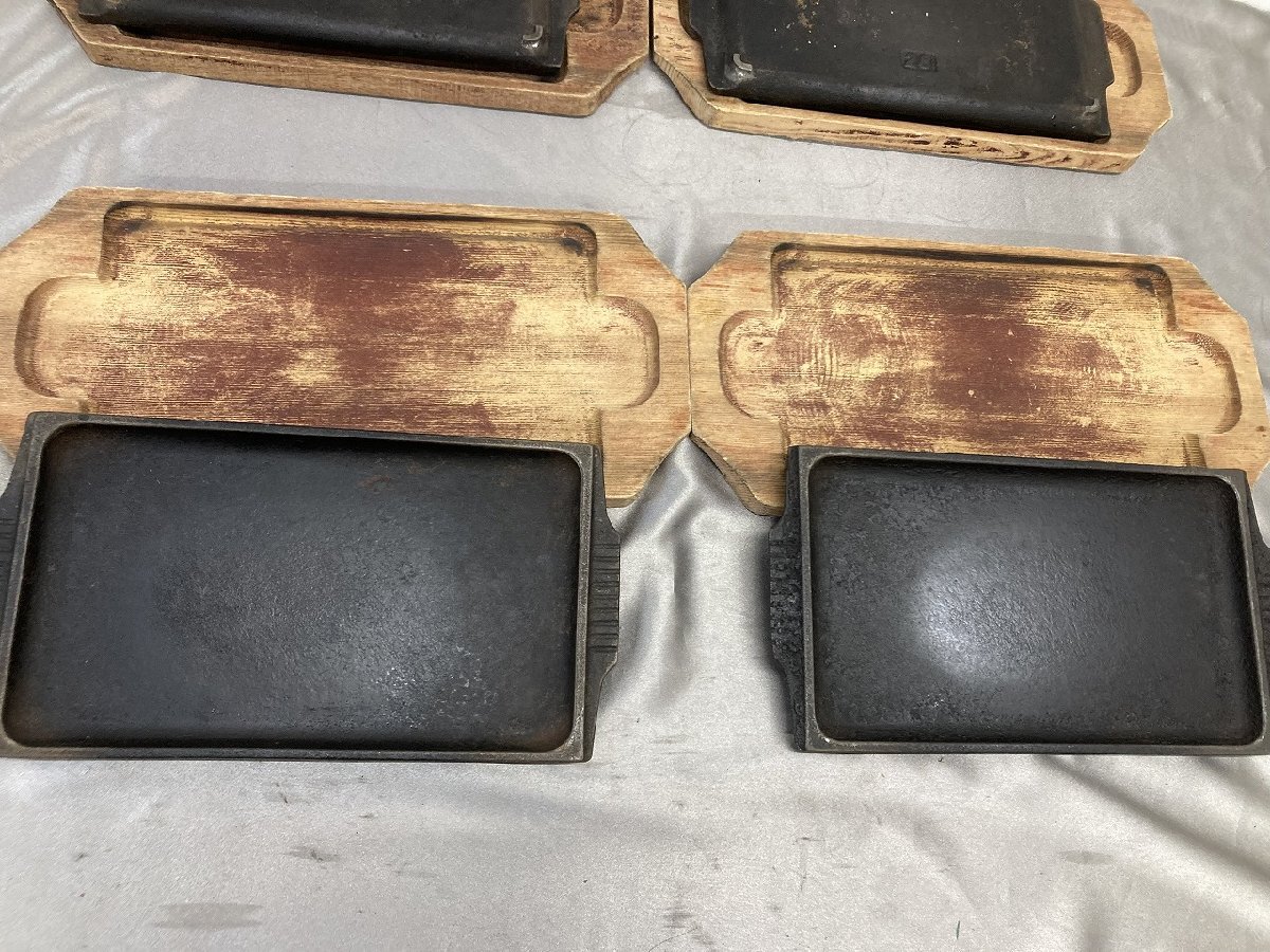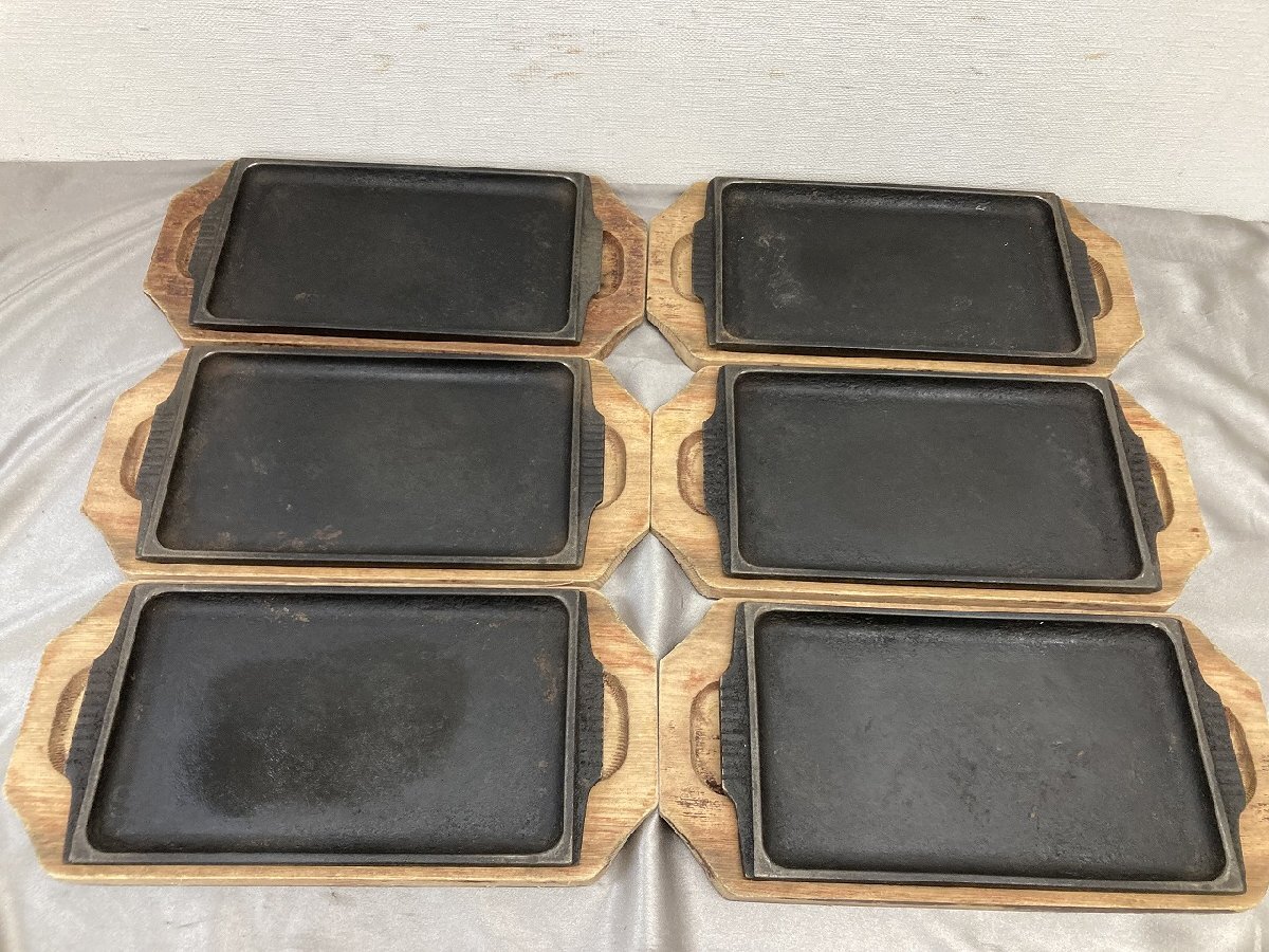 ★ L 食器 厨房用品 店舗用品 プレート ステーキプレート 鉄板 トキワ 28 木台 木製プレート付き 6点セット まとめ売り 中古品