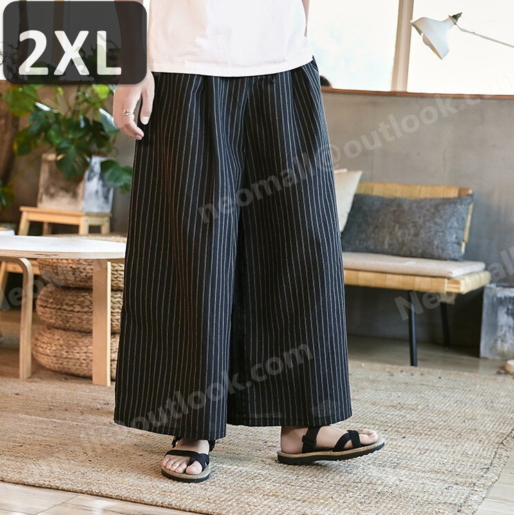 お買い得☆メンズ ワイドパンツ ブラック 2XL カジュアル ロングパンツ スウェット 無地 ポケット付 オールシーズン【065】