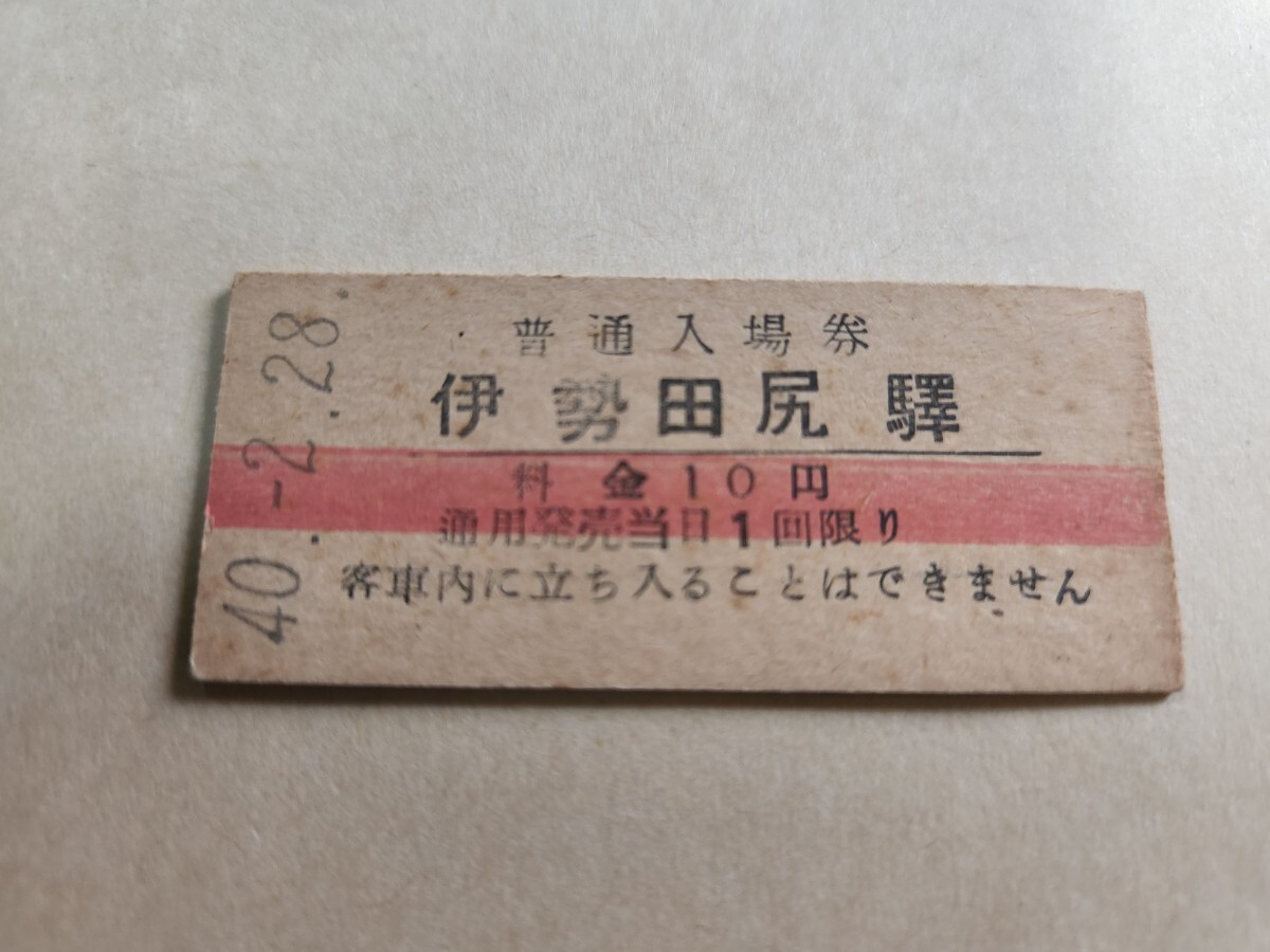 国鉄 伊勢田尻駅 10円赤線 入場券 硬券 昭和40年 鉄道 貴重品