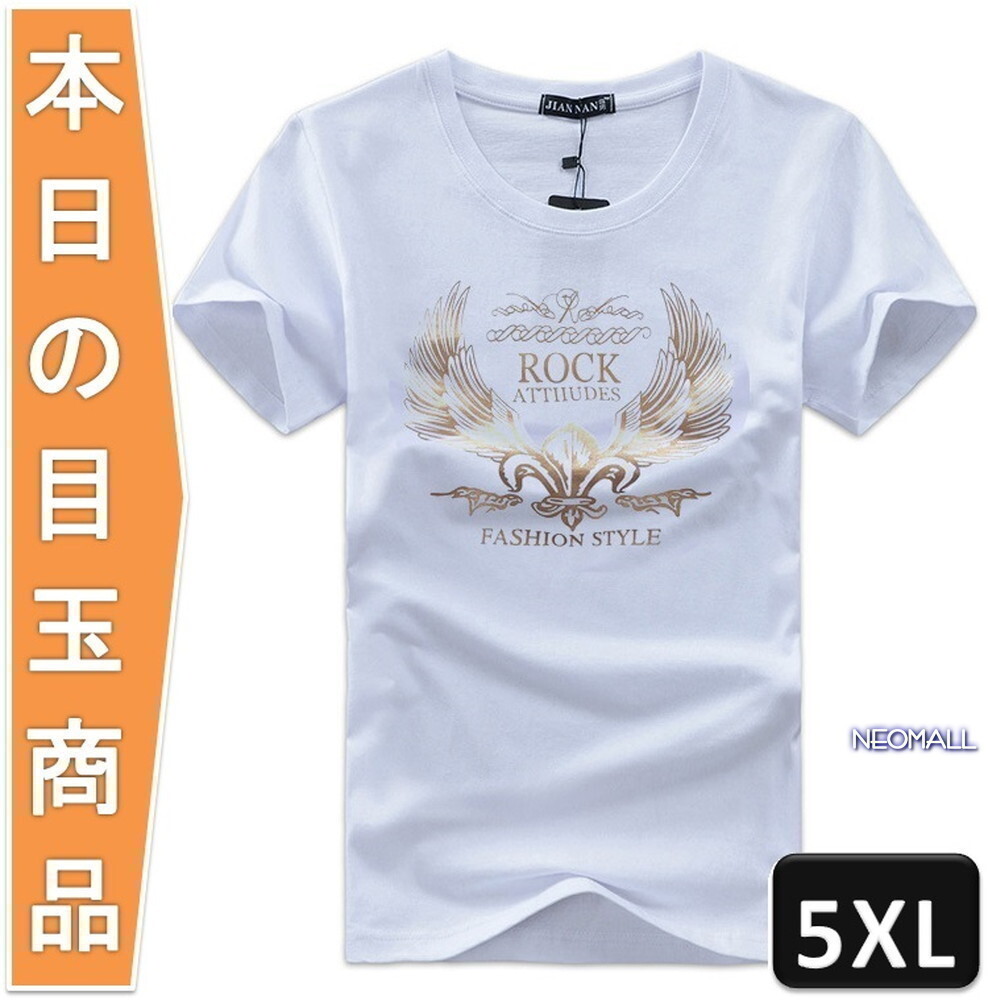 今日の目玉 ☆ 丸首 半袖 Tシャツ【294】ホワイト 5XLサイズ トップス お洒落 シンプル 春夏