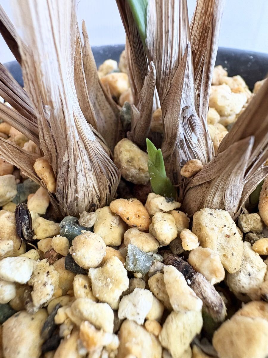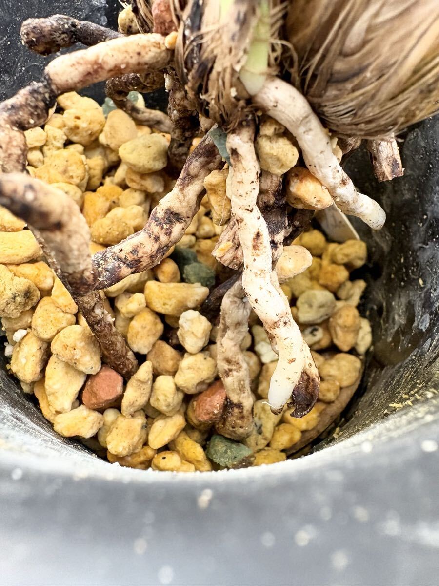 新木はお休みになりますが、新芽が2本出て来ています。根はやや甘めですが、新根も出て来ていますので、育成の上では問題ないと思われます。花芽付き株は100%の開花は保証は出来かねます。防虫対策等はしてますが、花芽が途中で止まったり等も稀にある事もご理解よろしくお願いします。