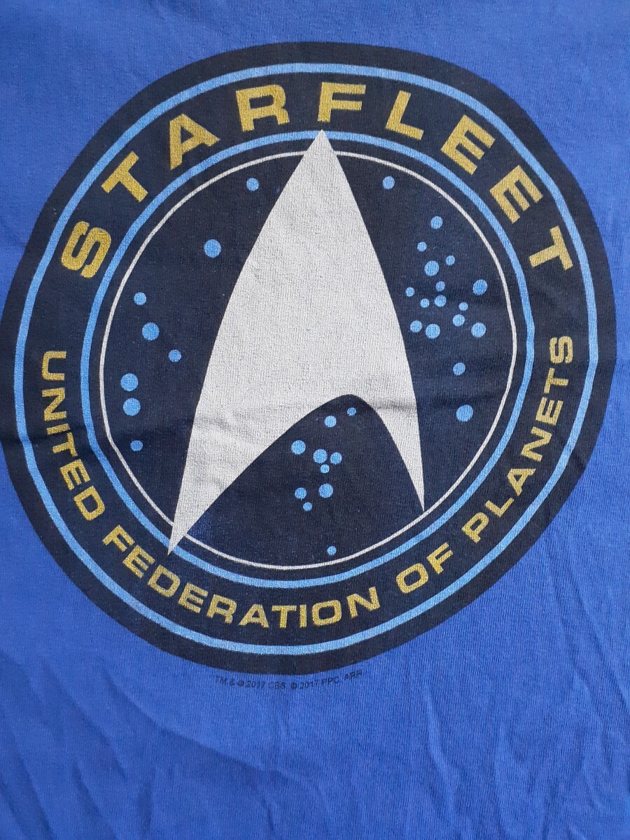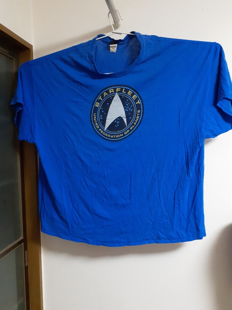 サイズ 5XL 着丈:82 肩幅:76 身幅:78 袖丈:21 袖口:27 色落ち、日焼け、匂い、ヨレ、シワなどがあります。 洗濯機のみで、クリーニングには出していません。 Star Trek Beyond STARFLEET UNITED FEDERATION OF PLANETS