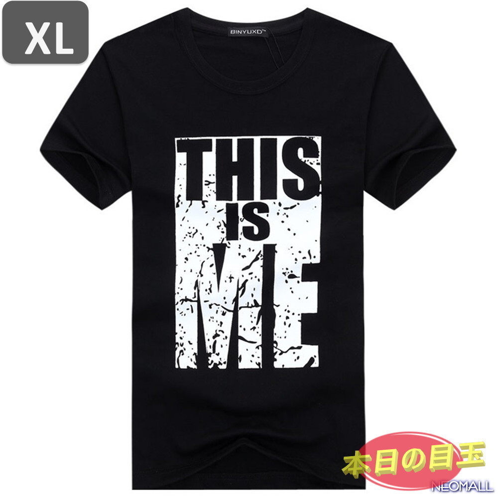 本日のお買得 ☆ 丸首 半袖 Tシャツ【464】 ブラック XLサイズ トップス シャツ シンプル イラスト デザイン 春夏
