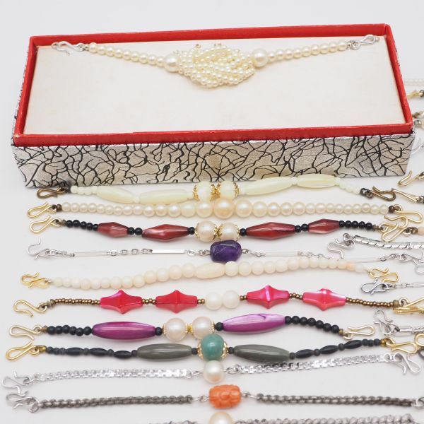 HM1101 1円 和装小物 羽織紐 50本 大量セット シェル 真珠 パール 天然石 等 まとめて