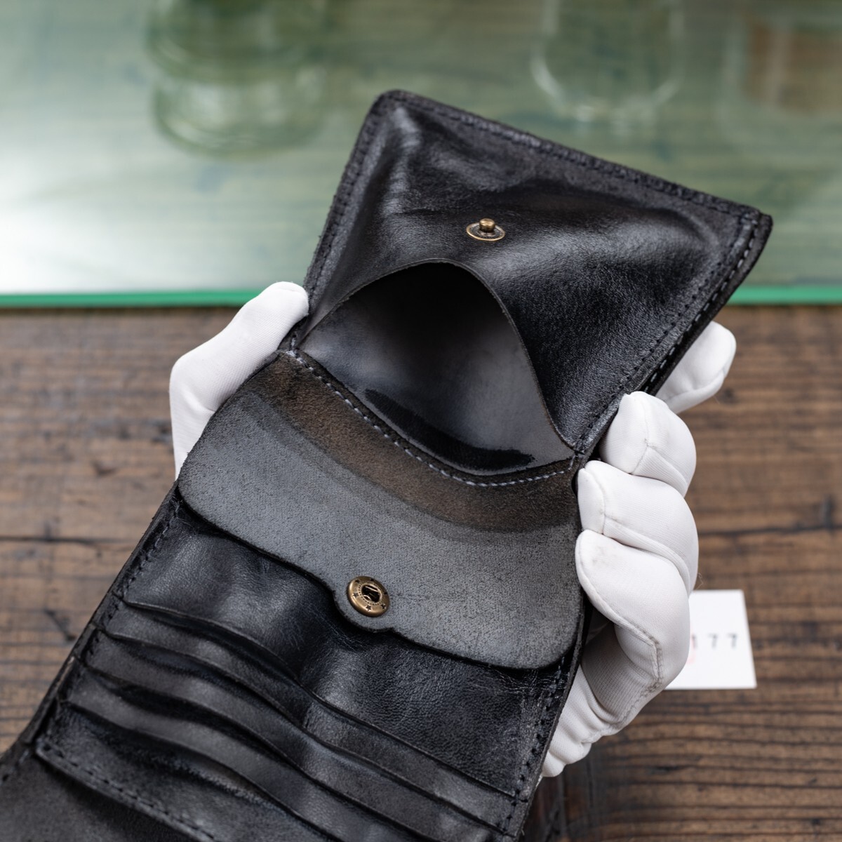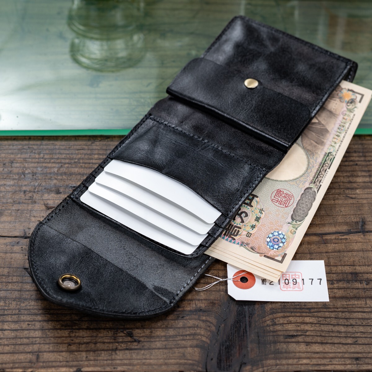 ウォッシュドレザー【牛革】スリム ミドルウォレット 三つ折り メンズ 本革 二つ折り 財布 新品 未使用 送料無料 1円 黒 ブラック 田中革具