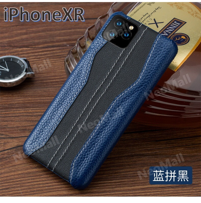 人気商品 ☆ アイホン 牛皮 型押し レザー スマホケース ブルー×ブラック アイホンケース 携帯ケース カバー iPhoneXR 【118】