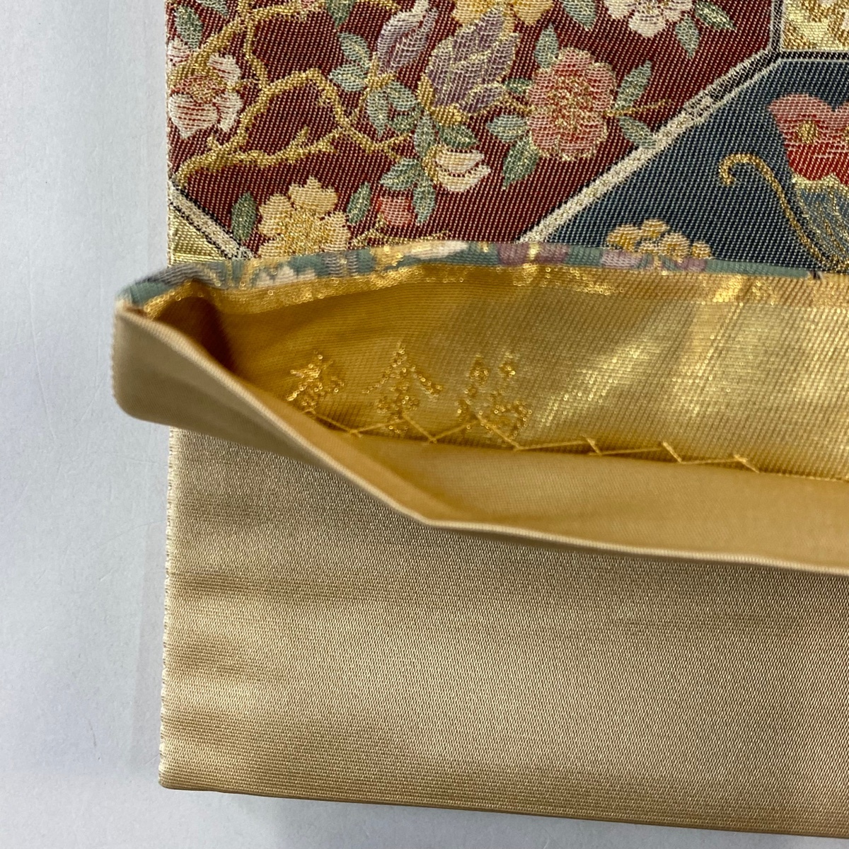 | 袋帯 美品 秀品 草花 蜀江文 金糸 箔 薄茶色 六通 正絹 【中古】 |