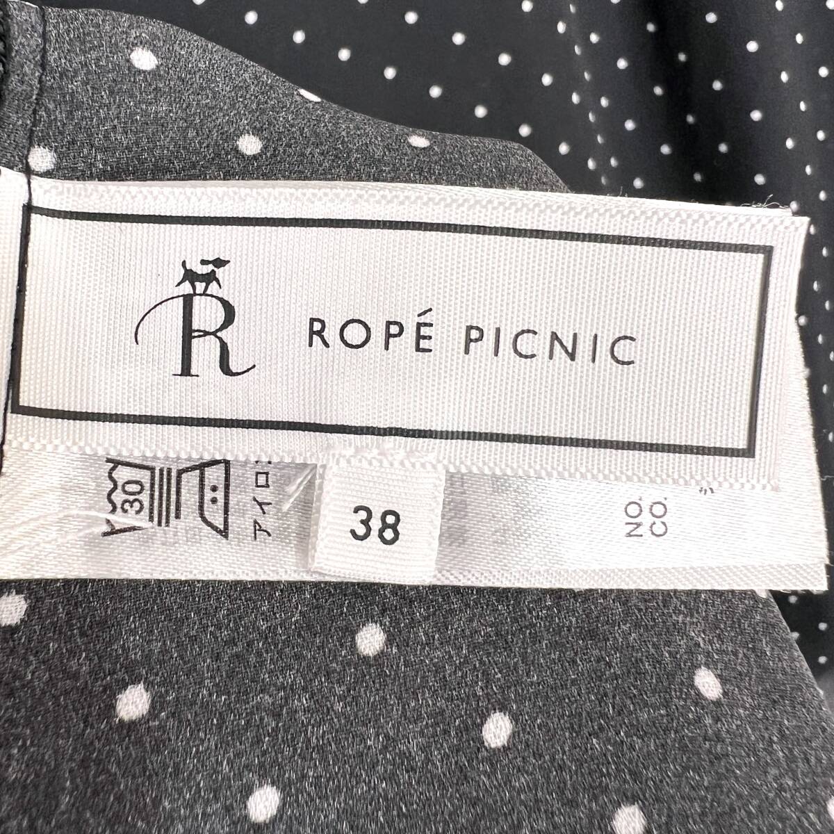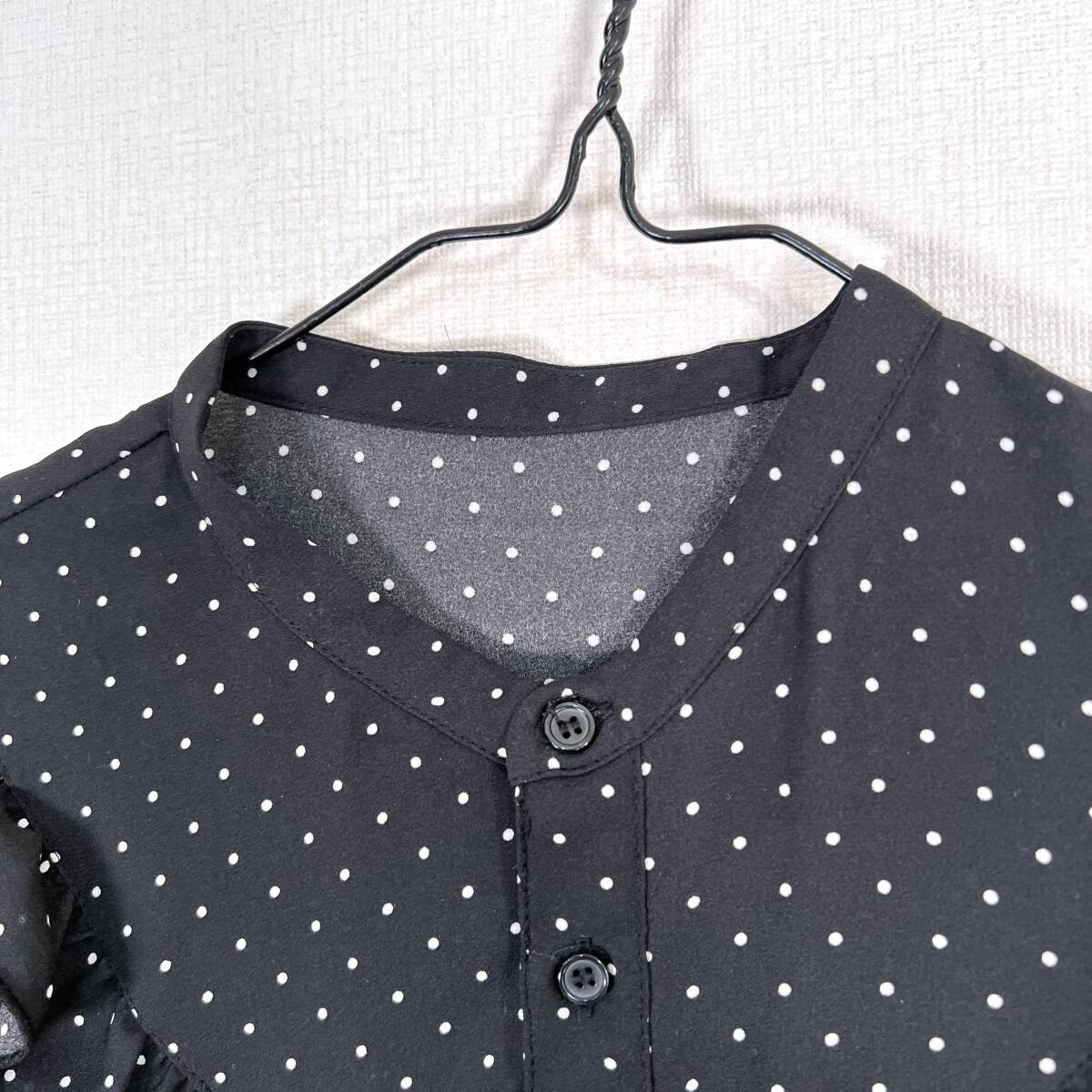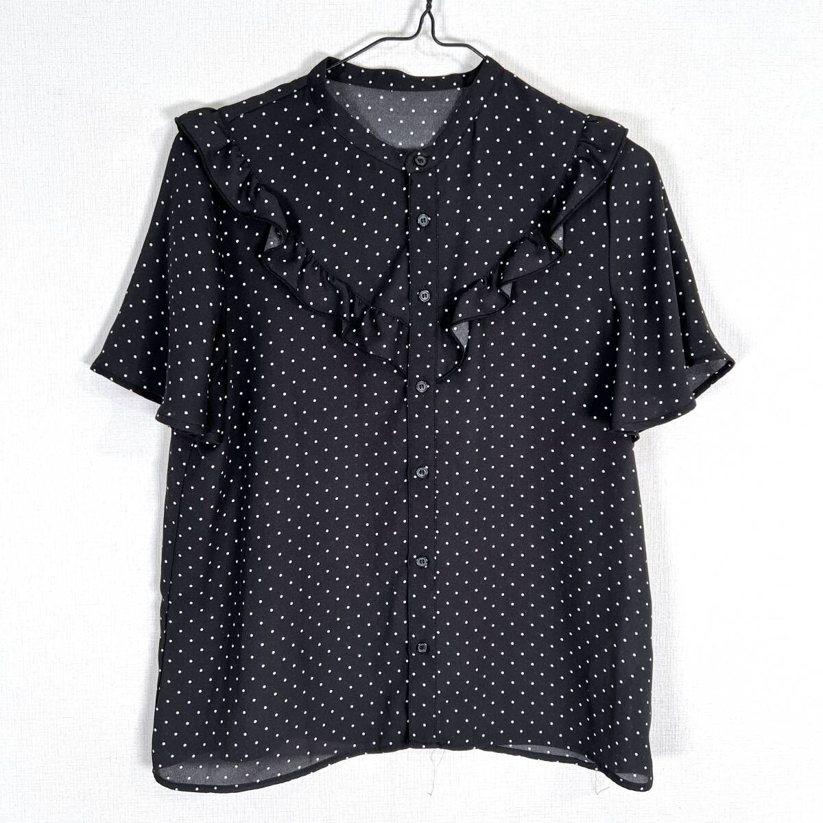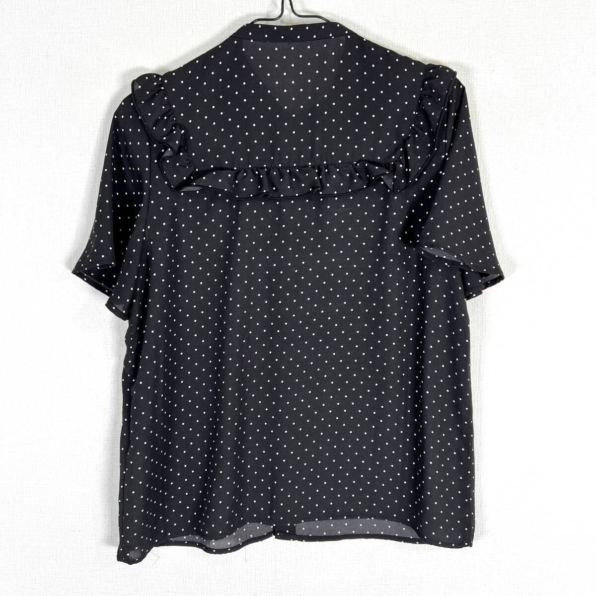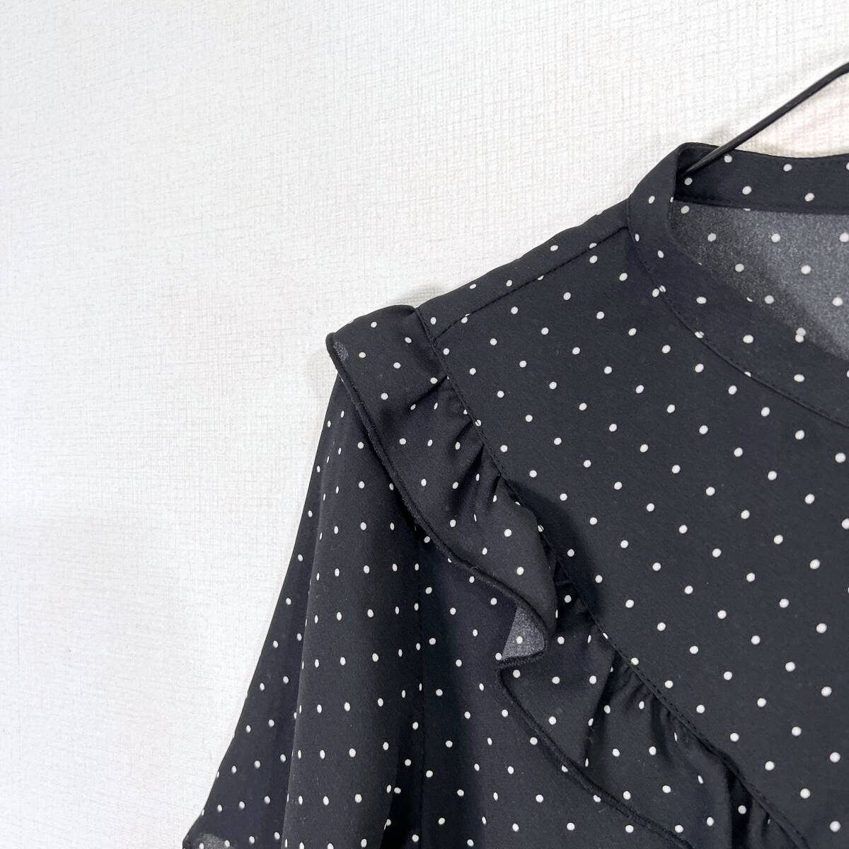 【ROPE PICNIC】ロペピクニック 黒 ブラック ドット柄 フリル 半袖ブラウス シャツ カットソー トップス フェミニン レディース 38【c033】